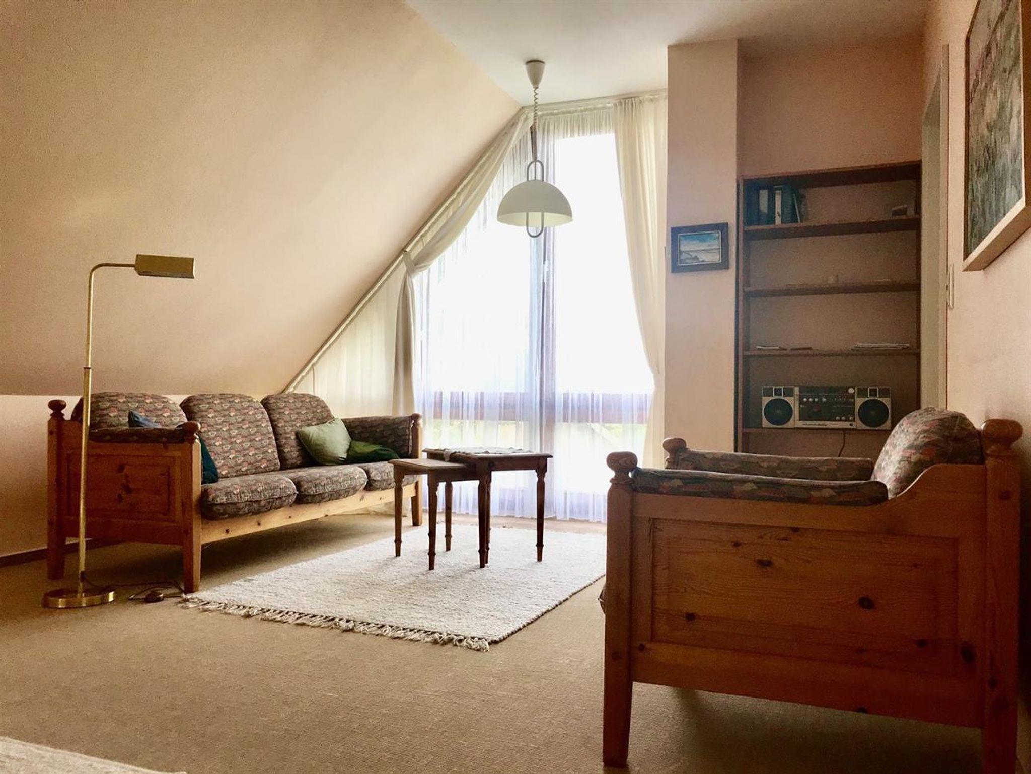 Der große Wohnraum ist gemütlich eingerichtet mit Sitzecke und seperatem Essplatz.