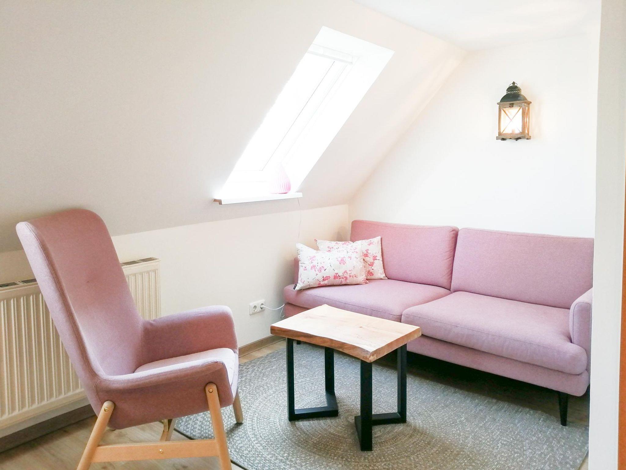 Die Ferienwohnung „Höhnerstall“ befindet sich im 1. OG des Bauernhauses und beschreibt den direkten Blick aus dem Schlafzimmer zu unseren fleißigen Frühstückseier-Lieferanten. Die Wohnung besteht aus einer Wohn- und Küchenkombination (Herd mit Backofen, Kühlschrank mit Gefrierfach, Geschirrspülmaschine, Toaster, Kaffeemaschine, Wasserkocher), von der aus sich das Bad abzweigt. Daneben befindet sich das Elternschlafzimmer und das Kinderzimmer verfügt über 3 Betten. Für das Kleinkind: Kinderhochstuhl, Steckdosenschutz, Treppenschutzgitter, Verdunkelungsmöglichkeit Kinderzimmer, Babybett. WLAN ist im Bauernhaus sowie im Garten und auf dem Hofplatz jederzeit verfügbar und zusätzlich buchbar; die Ferienwohnungen im Ferienhaus sind nicht für den WLAN-Empfang ausgelegt. Wir bitten um Verständnis.