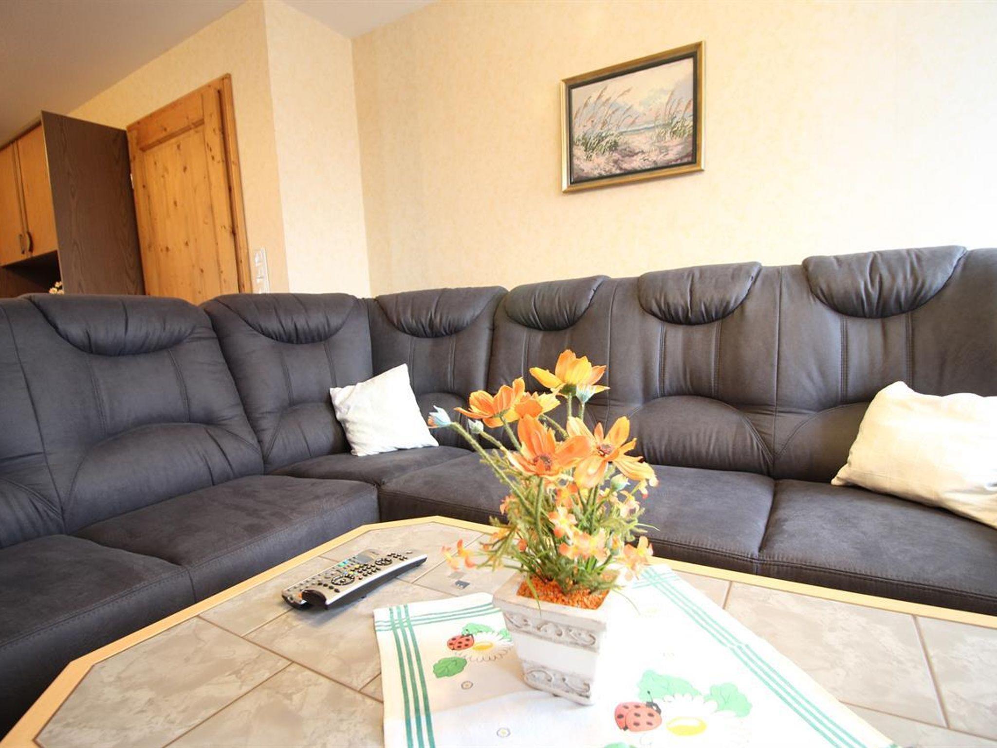 Im Wohnzimmer befindet sich der Essbereich und Satelitten-TV ist vorhanden.