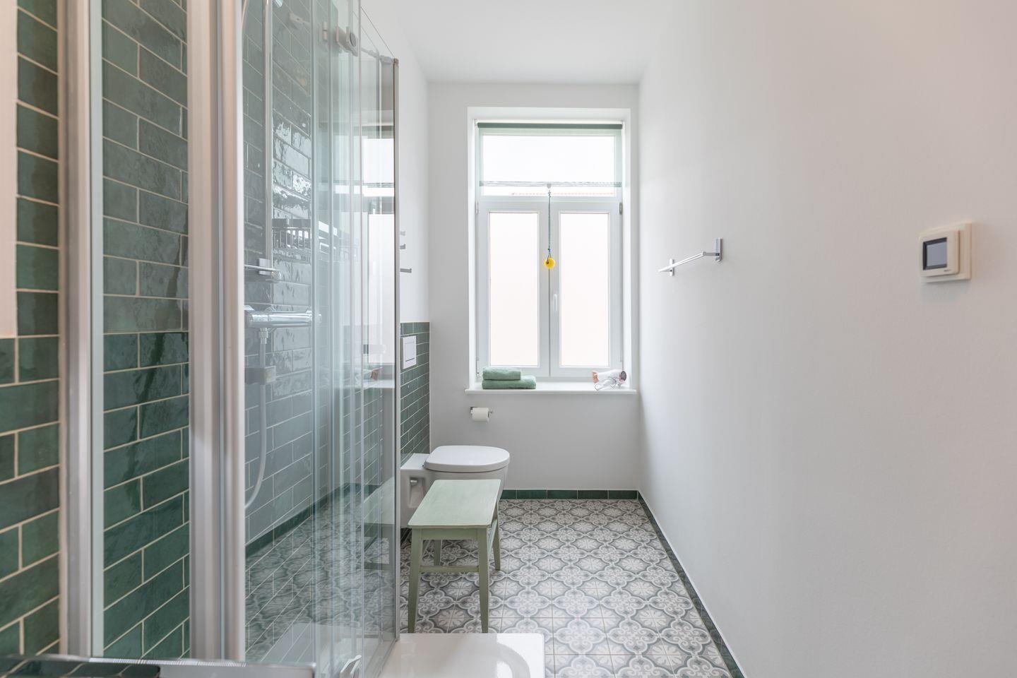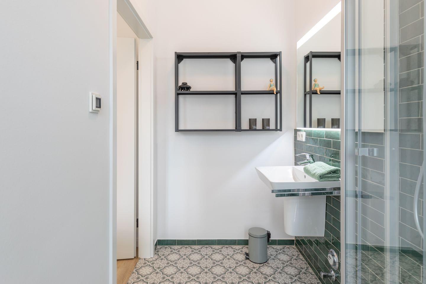 Das chic designte Duschbad mit Fußbodenheizung rundet das Bild ab.