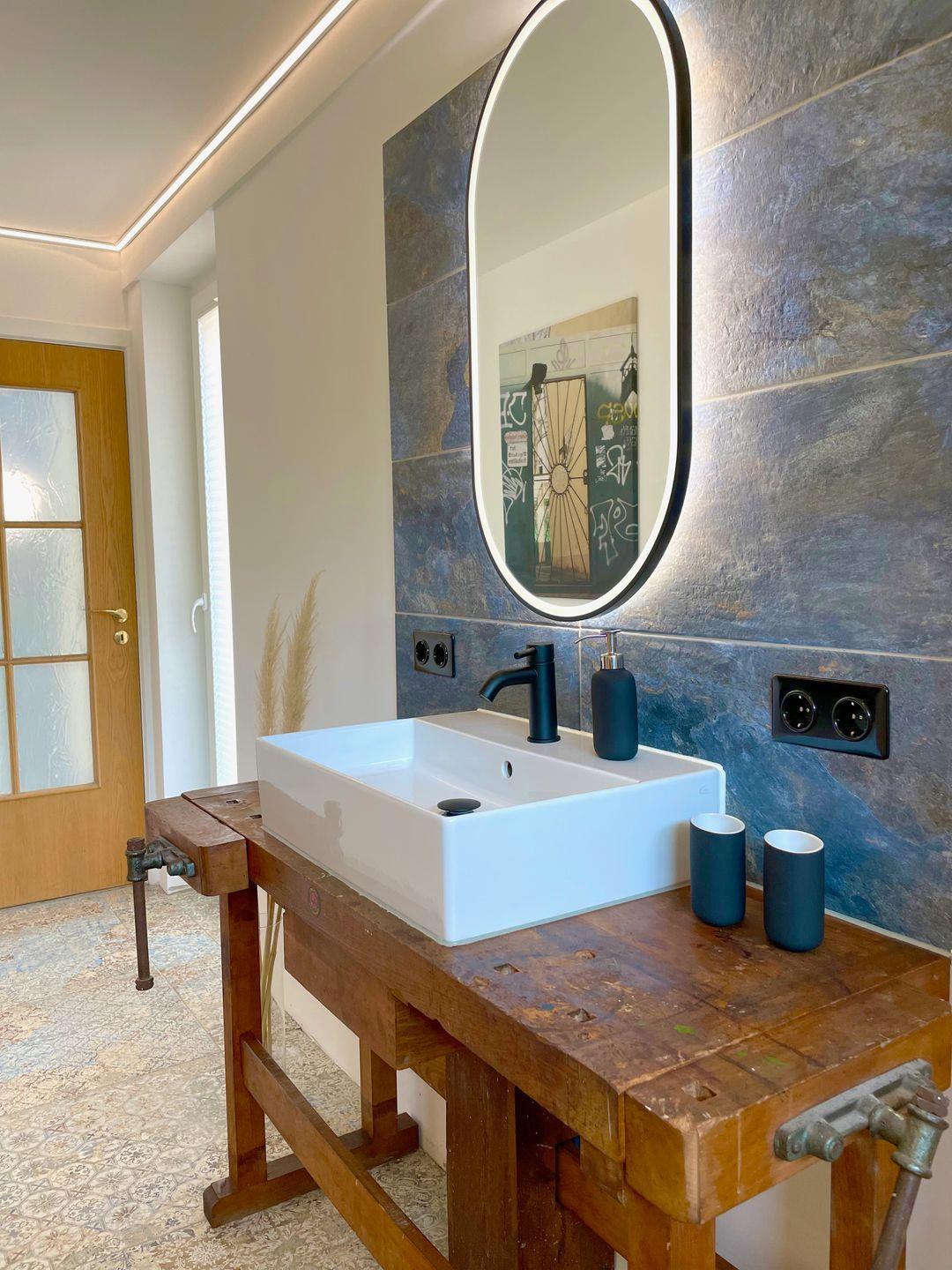 Voll ausgestattet ist der offene Küchen-Essbereich zentraler Ort und vor dem riesigem Fernseher mit Netflix und IP-TV können es sich im 40qm Wohnzimmer wirklich alle zusammen gemütlich machen. Schnelles Internet gibt’s natürlich!