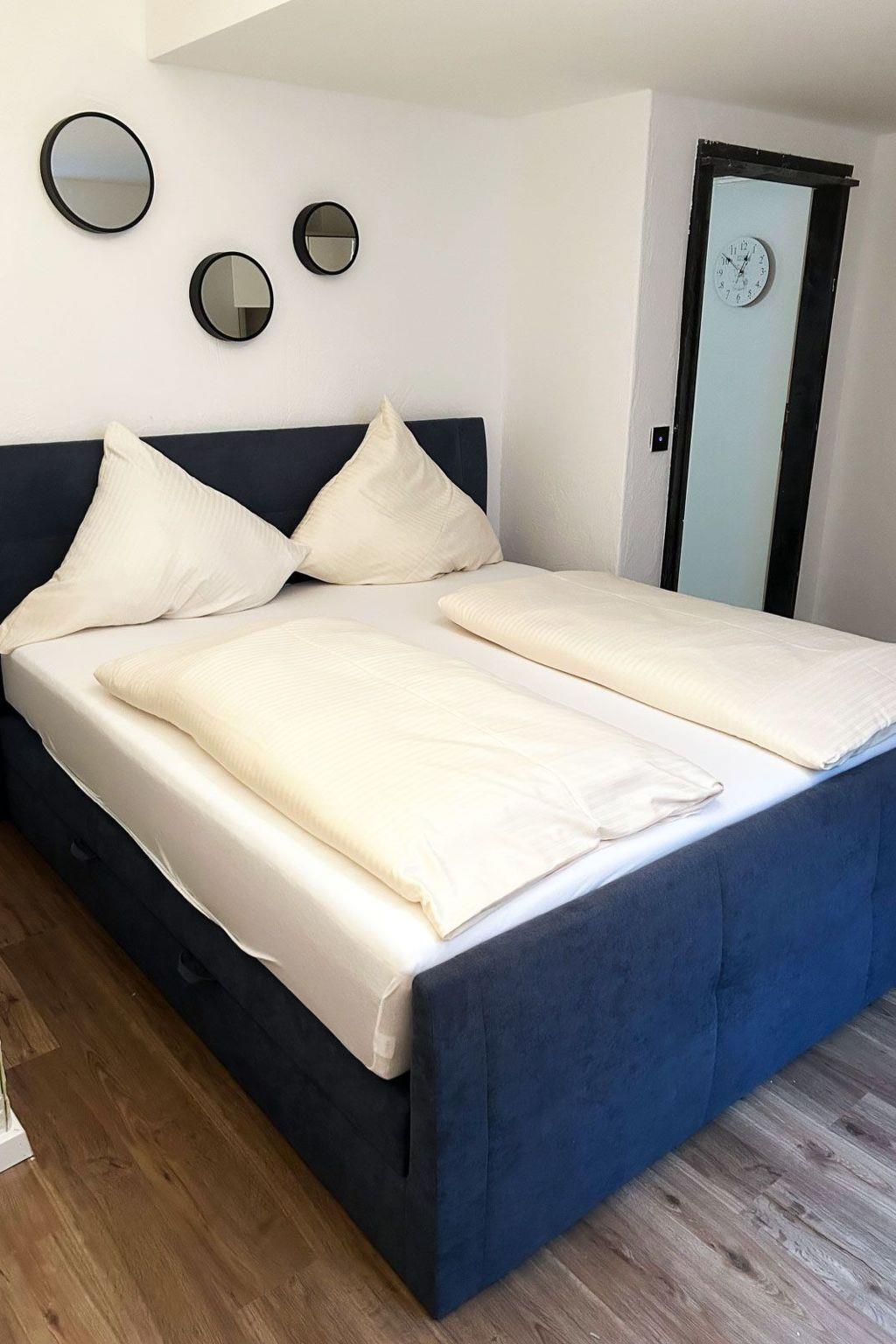 Inside, the flat welcomes its guests with a well thought-out layout that combines comfort and functionality. The three separate bedrooms offer enough privacy for every guest. A washing machine and tumble dryer are available for communal use in the building, which is particularly practical for longer stays. The living area with adjoining dining area invites you to spend time together, while the fully equipped kitchen with induction hob, coffee machine, dishwasher and kettle leaves nothing to be desired.