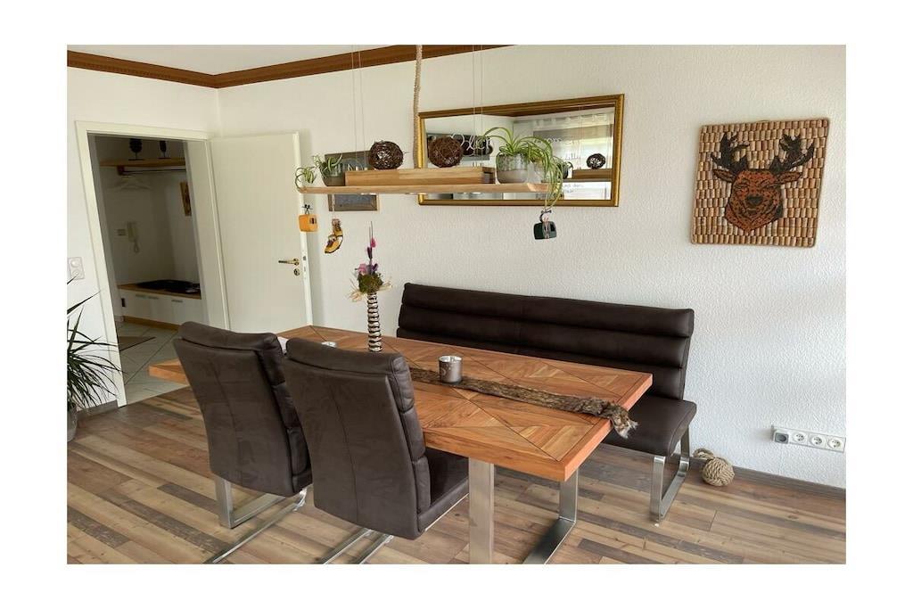 Wunderschöne, sehr ruhig gelegene und liebevoll eingerichtete Ferienwohnung mit zwei Balkonen (Süd-/Westausrichtung), jeder von einem der Schlafzimmer zugänglich sowie einem Tiefgaragen-Stellplatz. Ein gigantischer Bergblick in alle 4 Himmelsrichtungen lädt zum Träumen, Sonnen und Relaxen ein. Alle zwei Schlafzimmer und das Wohnzimmer verfügen über einen Flat-TV. Im Wohnzimmer und in einem der Schlafzimmer steht Telekom Home-Entertain zur Verfügung. Für alle Fragen, die Euch am Herzen liegen, sind "ALEXA" und selbstverständlich WIR für Euch da. Selbstverständlich ist WLAN in der gesamten Wohnung vorhanden. Unser Restaurant "Zum Wildschütz" ist fußläufig 15 Minuten entfernt. Sehr gerne beliefern wir Euch mit unseren Schmankerl'n aus Küche und Keller, wenn ihr mal Lust auf einen gemütlichen Abend zu Hause habt. Eine kleine Grundausstattung wie Tee, Kaffee, Essig/Öl, Salz/Pfeffer und Zucker sind bei Anreise vorhanden.
