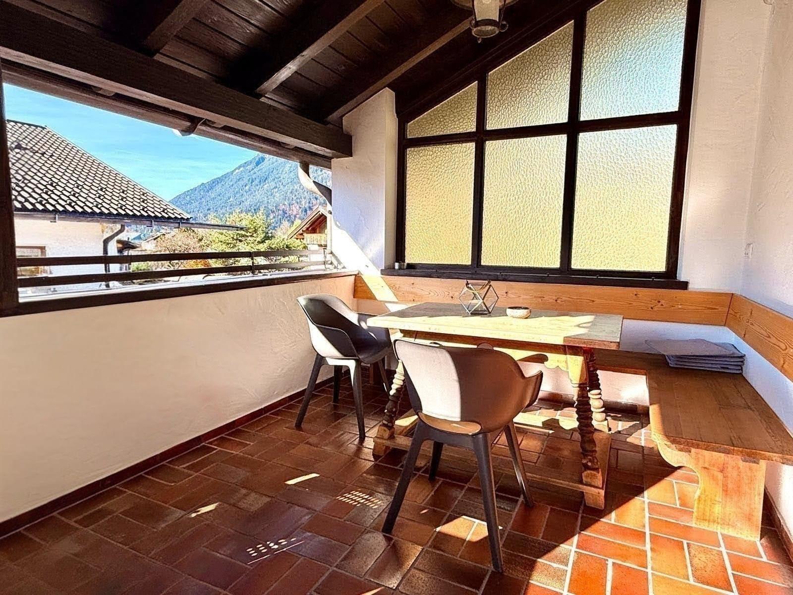 Die Möbelierung der Wohnung ist im alpenländischen Stil gehalten.