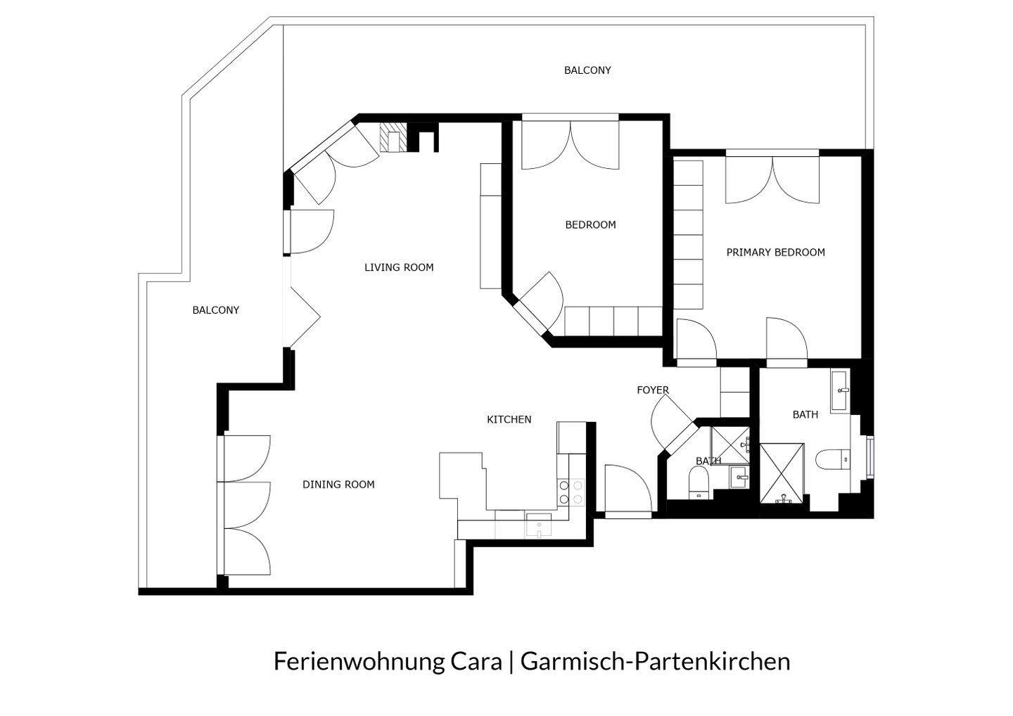 Die Wohnung "Cara" liegt nahe dem Zentrum von Garmisch in einem neu gebauten Mehrfamilienhaus. Auf 123 qm finden bis zu 4 Personen ein zu Hause auf Zeit!