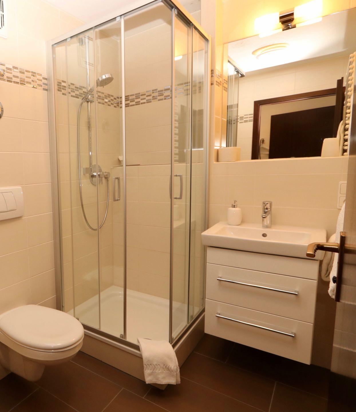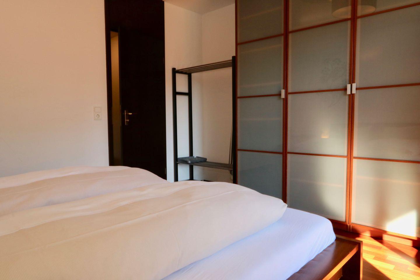 Ebenfalls befindet sich hier das erste von 2 Schlafzimmern mit Doppelbett und kleinem Westbalkon. Von hier aus haben Sie einen wundervollen Bergblick auf den Wank und hören das leise Rauschen der Partnach. Gleich Tür an Tür liegt das erste der beiden Badezimmer mit Badewanne und WC. Weiter geht es in das helle Wohnzimmer mit hoher Decke und ansprechenden modernen Möbeln. Für die Abendunterhaltung können Sie wählen zwischen dem modernen Flachbild-Fernseher oder einigen Brettspielen, sowie Büchern. Langweilig wird es hier garantiert nicht!