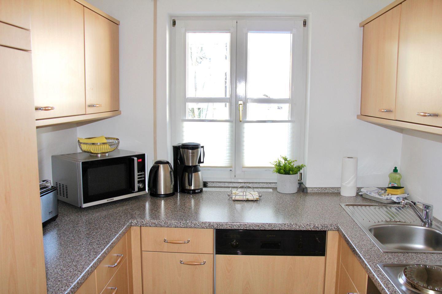 Die Küche ist vom Flur aus zugänglich und mit Herd und Backofen ausgestattet. Außerdem gibt es ein separates WC. Im Keller befindet sich die Tiefgarage, ein Ski-Raum, sowie ein Waschraum mit Waschmaschine und Trockner. Tiere sind hier nicht erlaubt, WLAN und ein Tiefgaragenstellplatz sind kostenfrei!