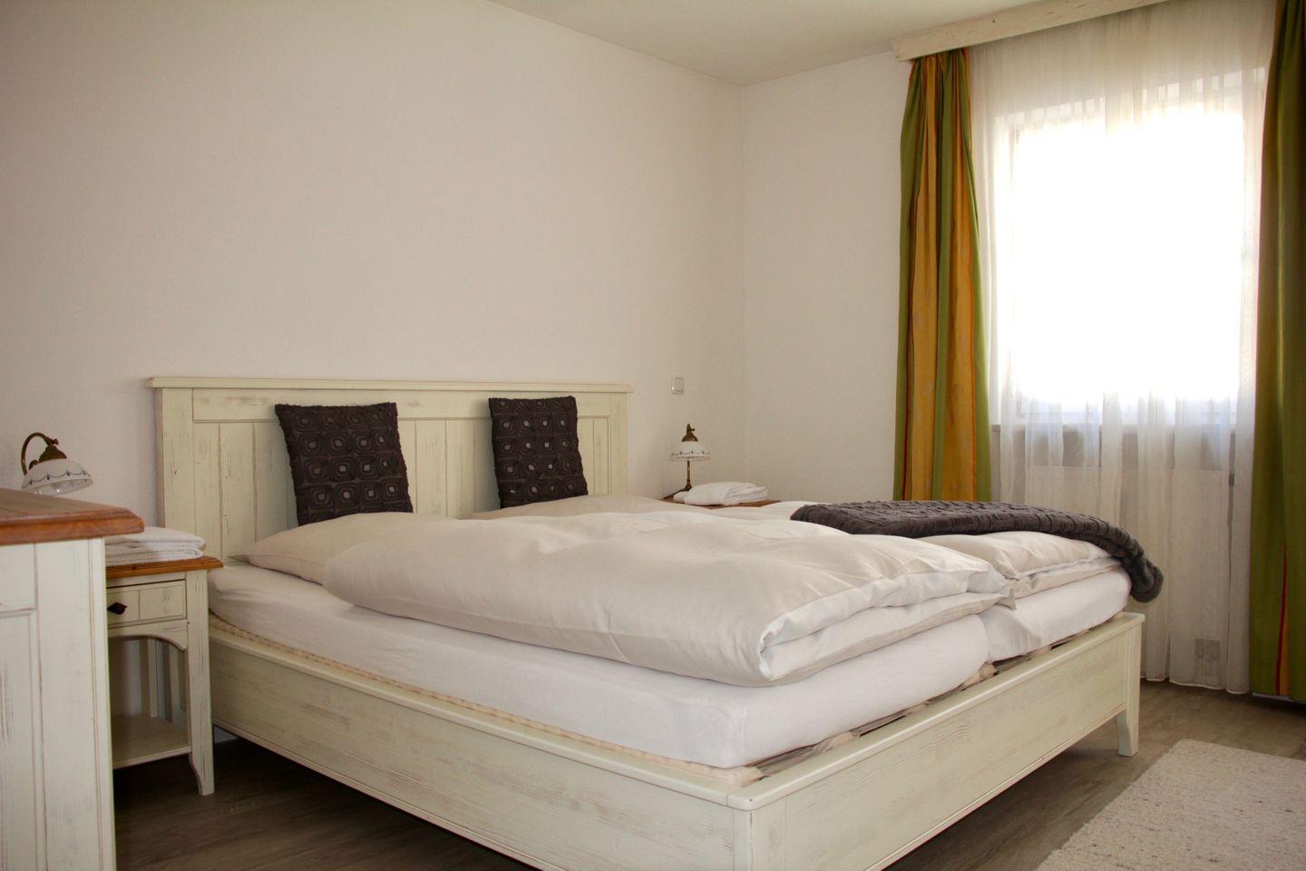 Durch den Flur gelangt man in den hinteren Teil der Wohnung, wo dann das Schlafzimmer mit angeschlossenem Bad wartet. Helle Landhausmöbel sorgen für das richtige Flair, um sich wohl zu fühlen. Auch hier befindet sich ein Flachbildfernseher und außerdem ein zweiter Balkon, von welchem Sie direkt auf den Kankerbach blicken und ihm "lauschen" können.