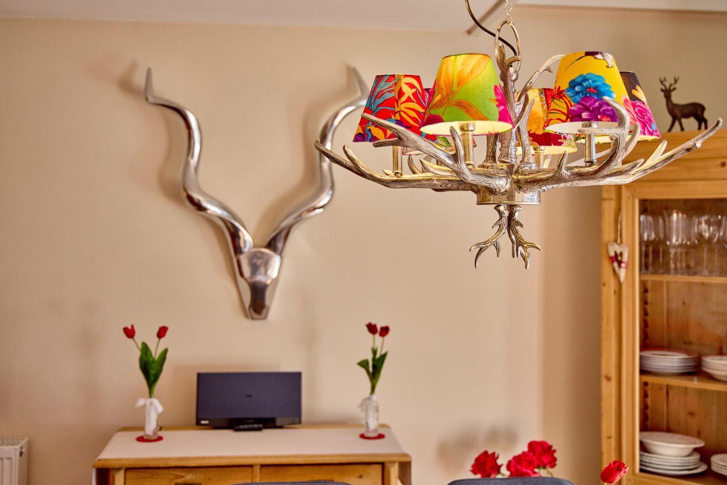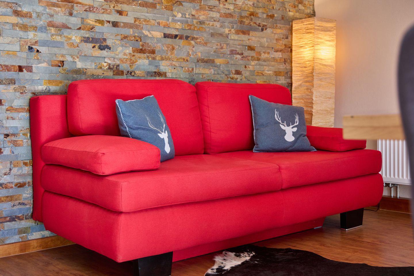 Tradition trifft auf Moderne, mitten in den Bergen! Bis zu 3 Personen finden hier ein Zuhause auf Zeit. Warme Brauntöne gemischt mit modernem rot und ein Tier, das man mit Bayern in Verbindung bringt: der Hirsch. Zu Hause in den Wäldern der Gegend findet sich das stolze Tier in vielen kleinen Details der Wohnung wieder.