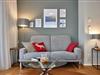 Im offen gestalteten Wohnraum finden Sie zum Entspannen eine kuschelige Sitzecke mit bequemem Sofa, Sessel und Flachbild-TV, und zum gemütlichen Zusammensitzen einen einladenden Esstisch. Bodentiefe Fenster lassen viel Licht in die Wohnung und ermöglichen direkten Zugang zur sonnigen Terrasse.