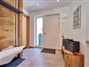 Alle Schlafzimmer sind jeweils mit bequemen Doppelbetten, großzügigen Kleiderschränken für Ihr Gepäck und eigenen Fernsehern ausgestattet. Zudem verfügen 3 der Schlafzimmer auch über praktische Schreibtische. 3 Schlafzimmer befinden sich im Obergeschoss, zusammen mit einem großen Badezimmer, in dem Sie neben einer ebenerdigen Dusche mit Regenbrause auch eine entspannende Badewanne finden. 2 der Schlafzimmer haben jeweils einen Zugang zum großen Balkon, auf dem sich bei schönem Bergblick herrlich die Abendsonne genießen lässt. Das andere Schlafzimmer verfügt über einen eigenen, kleineren Balkon.