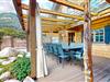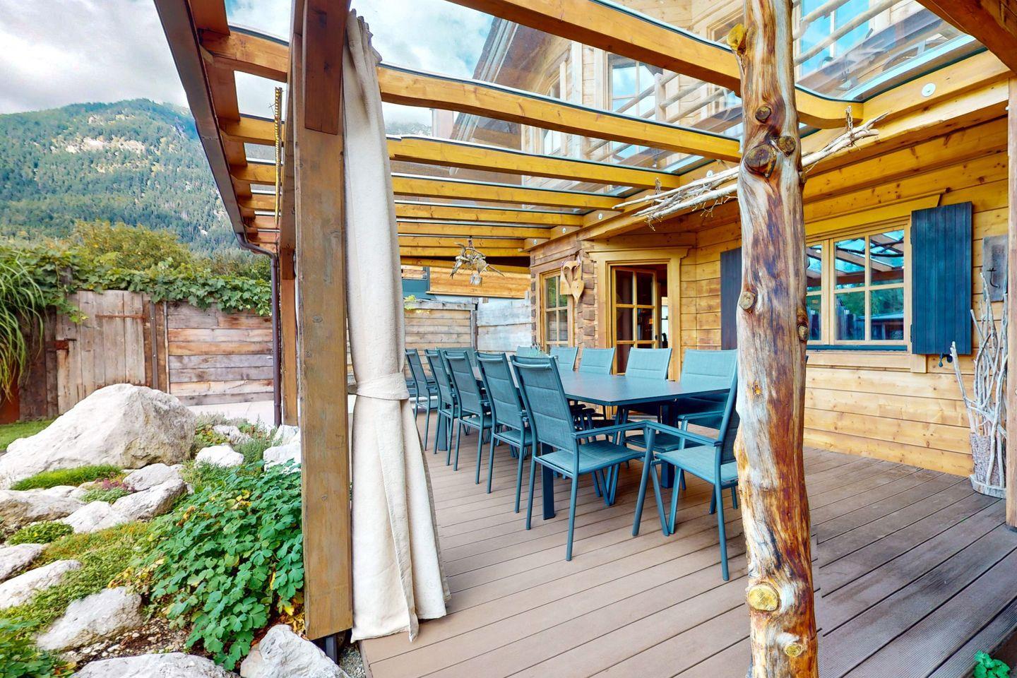 Vom modernen Wohn-Essbereich aus erreichen Sie die überdachte Terrasse mit unvergesslichem Blick auf die Bergwelt rund um das Wettersteingebirge mit Alp- und Zugspitze.