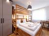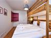 Das erste der beiden Schlafzimmer bietet ein bodentiefes Fenster, ein massives Eiche-Doppelbett mit elektrisch verstellbaren Lattenrosten, sowie einen geräumigen Schrank. Das zweite Schlafzimmer ist ebenfalls mit einem massiven Eiche-Doppelbett ausgestattet, weiters gibt es darüber gelegen ein vollwertiges sehr stabiles Einzelbett in gleicher Bauart als Stockbett. Ein Schrank, eine große Regalfläche sowie ein kleiner Schreibtisch runden die Ausstattung dieses Zimmers ab.