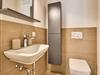 Das Gäste-WC bietet neben Toilette mit Waschbecken noch genügend Ablagefläche bzw. Stauraum.