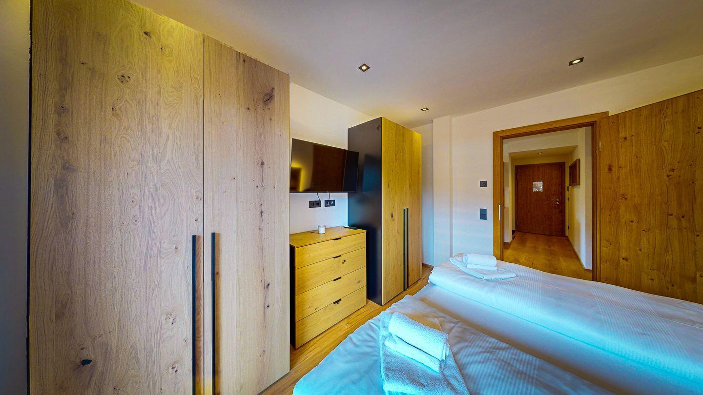 Jedes der beiden Schlafzimmer ist komfortabel und mit Garderoben ausgestattet, die ausreichend Platz für Ihr Reisegepäck bieten. Hier finden Sie dank der kuscheligen Doppelbetten einen ruhigen Rückzugsort nach einem spannenden Tag auf den nahe gelegenen Pisten und Wanderwegen.