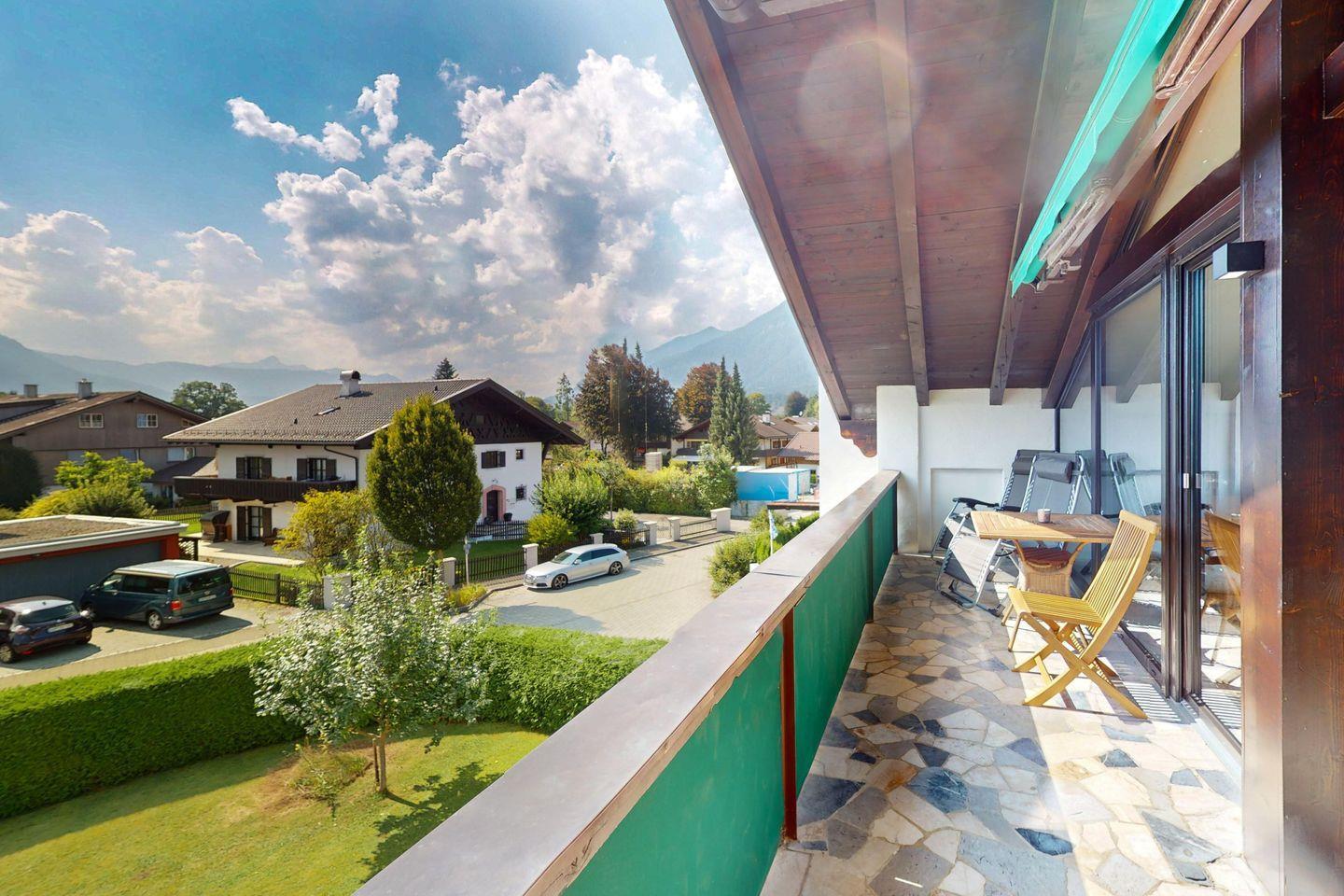 Ein besonderes Highlight dieser Ferienwohnung ist der atemberaubende Blick auf das majestätische Wettersteinmassiv mit den Waxensteinen, der Alpspitze und der Zugspitze. Genießen Sie dieses Panorama von einem der beiden gemütlichen Balkone, die perfekt positioniert sind, um sowohl den Sonnenaufgang als auch den Sonnenuntergang zu erleben.