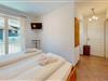 Die beiden Schlafzimmer bieten bequeme Rückzugsmöglichkeiten. Das größere Schlafzimmer verfügt über ein Doppelbett und einen begehbaren Kleiderschrank mit viel Stauraum. Im zweiten Schlafzimmer steht ein großes Einzelbett, ergänzt durch eine kleine Schreibkommode, die sich zum Beispiel fürs Arbeiten am Laptop anbietet. Beide Zimmer sind mit eigenen Fernsehern ausgestattet.