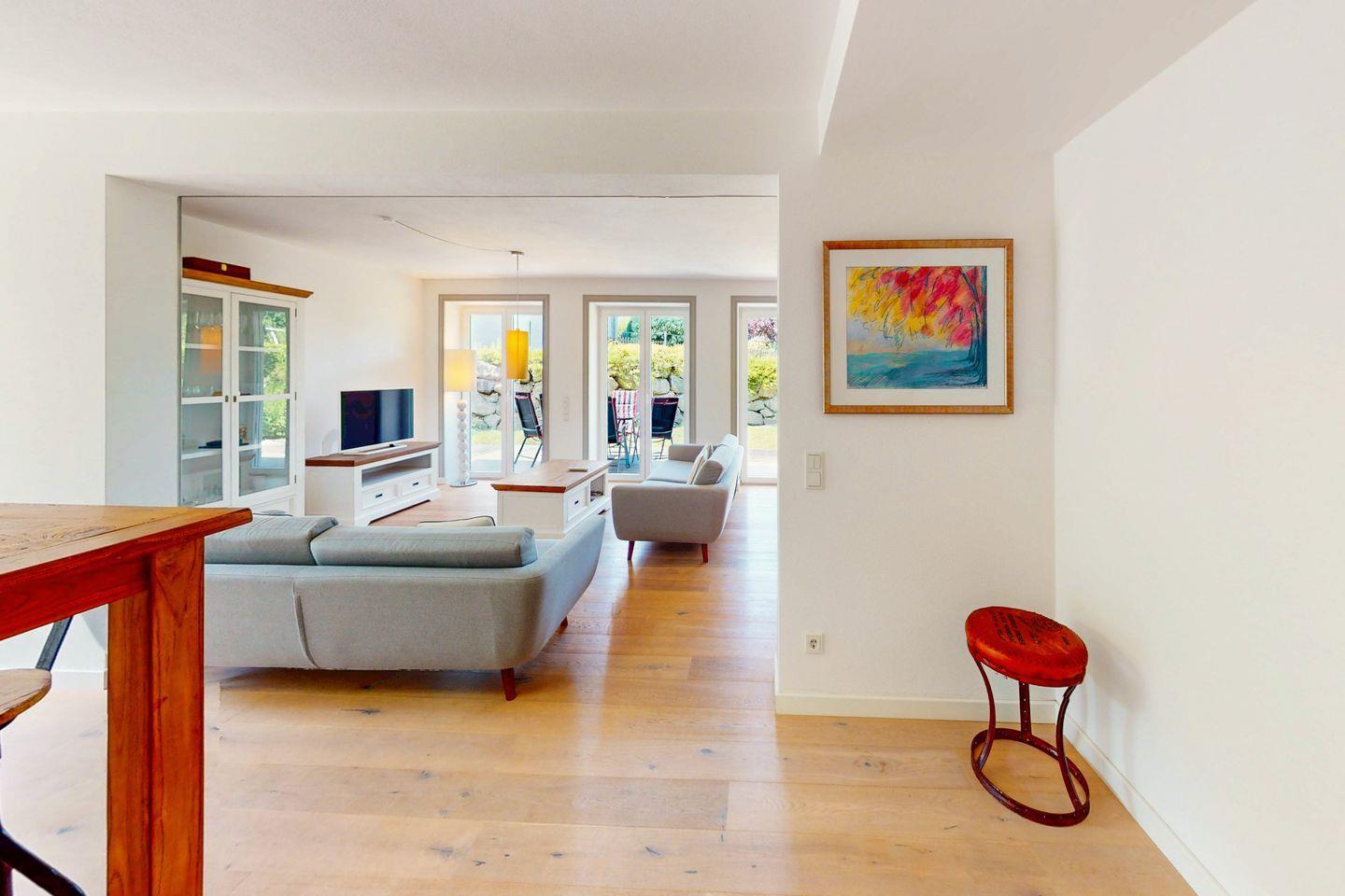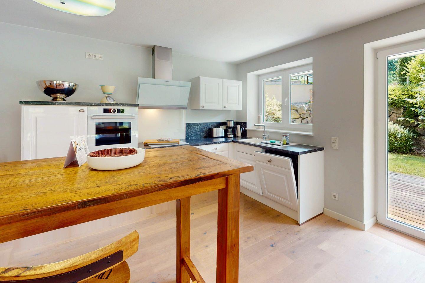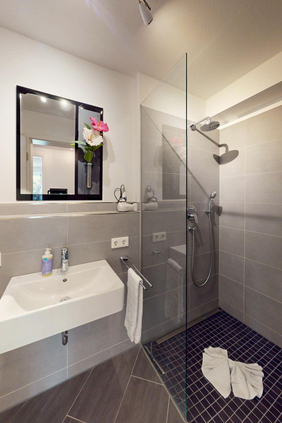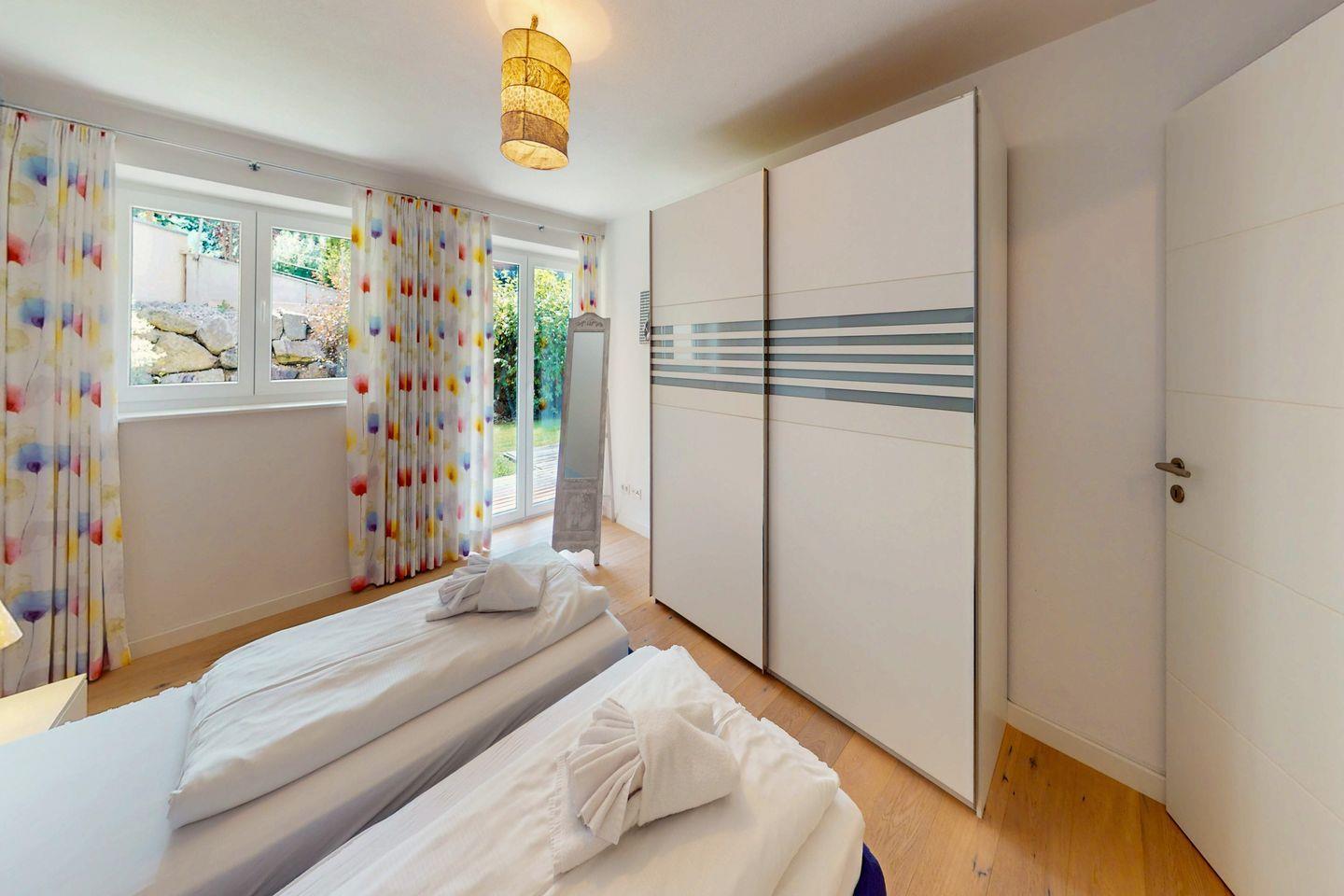 Für höchsten Komfort stehen Ihnen zwei moderne Bäder zur Verfügung – eines mit einer großzügigen Walk-in-Dusche, das andere ebenfalls mit ebenerdiger Dusche und zusätzlicher Badewanne für entspannende Auszeiten. Ein separates Wäschezimmer sowie eine praktische Abstellkammer sorgen für zusätzlichen Stauraum und Bequemlichkeit. Die Wohnung liegt ebenerdig im untersten Stockwerk eines an den Hang gebauten Wohnhauses. Das besondere Highlight der Garden Lodge ist die große, umlaufende Terrasse mit eigenem Garten – ideal für ein Frühstück in der Morgensonne oder einen entspannten Abend mit Blick ins Grüne.
