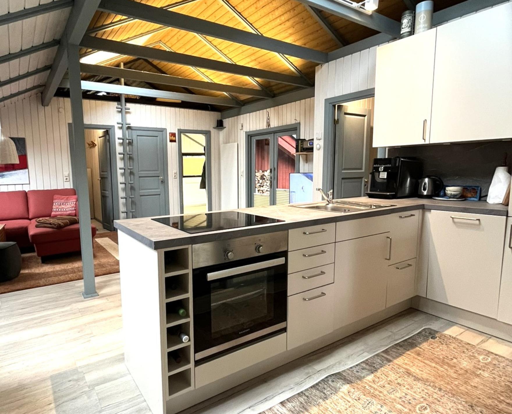 Das Haus verfügt über Schlafräume mit einem 180 x 200 cm, und zwei 140 x 200 cm breiten Betten. Die Küche ist mit Geschirrspülmaschine, Induktionskochfeld, Backofen, Kühl- und Gefrierkombination, Toaster, Eierkocher, Wasserkocher und weiteren Küchenutensilien wie z. B. einem Sodastream ausgestattet.