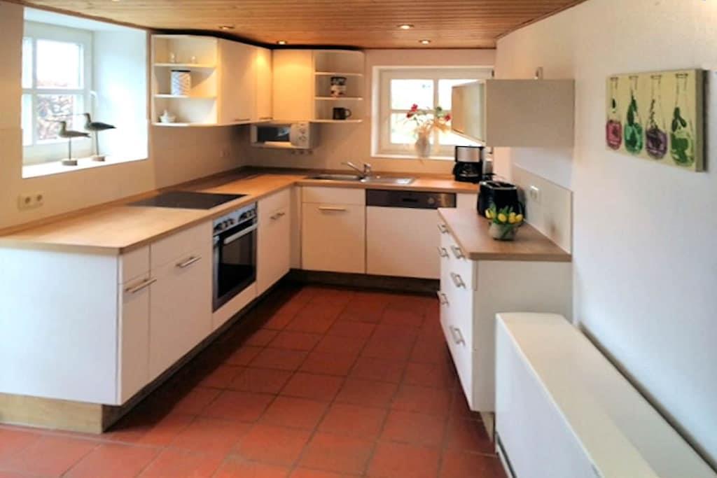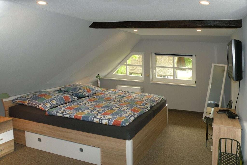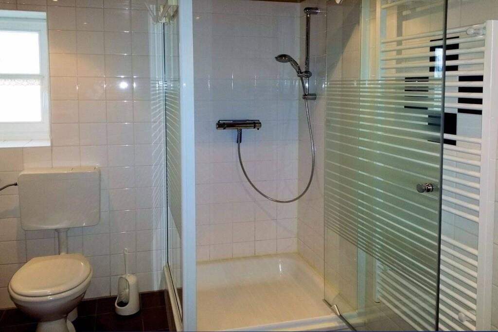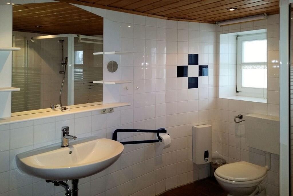 Ferielejlighed nr. 1 i "Landhaus zur Wiek" på Rügen tilbyder plads, komfort og afslapning for maksimalt 6 personer + 1 lille barn. Navnet "Storchensicht" (Storkudsigt) på ferielejligheden afspejler dens rolige, naturlige beliggenhed. To soveværelser er placeret på øverste etage, mens stuen med det tilstødende nye køkken, et af soveværelserne og brusebadet er i stueetagen, hvilket gør lejligheden ideel for rejsende med lette bevægelseshæmninger eller ældre gæster. Landstedet har internet/Wi-Fi og en vaskemaskine (gratis) samt en velholdt sauna (mod betaling) i en tilstødende bygning. Efter aftale med os er maksimalt én hund (mod betaling) tilladt pr. lejlighed – ikke flere hunde, og ingen meget store, farlige dyr eller kamphunde. Lejligheden er designet til vores gæsters afslapning af høj kvalitet – vi accepterer ikke typiske grupperejser.