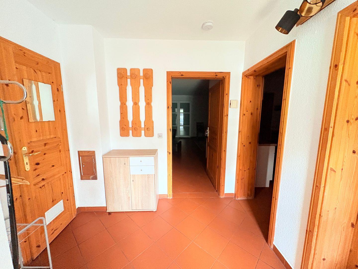 Das großzügige Wohnzimmer mit direktem Zugang zur Terrasse lädt zum Entspannen ein. In der voll ausgestatteten Küche finden Sie alles, was Sie zum Kochen benötigen. Zwei Bäder, eine Waschmaschine sowie ein Kamin bieten zusätzlichen Komfort.