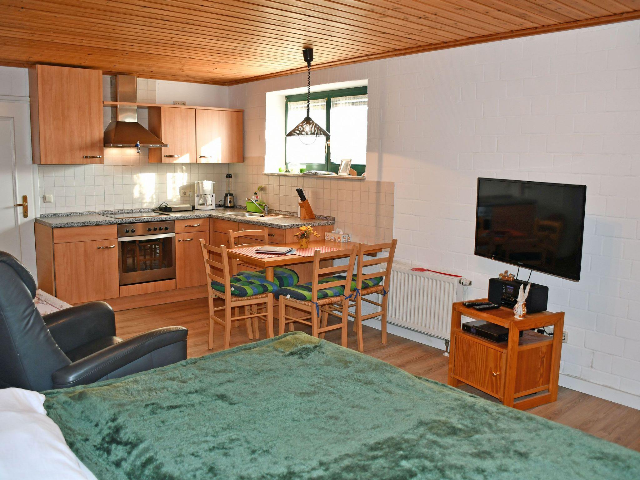 Wir vermieten hier eine modern und liebevoll eingerichtete Ferienwohnungen (1 Wohn-/Schlafzimmer, 1 Schlafzimmer, Küchenzeile, Dusche/WC, WLAN, Terrasse mit Gartenmöbeln, Soutterain) für 4 Gäste.