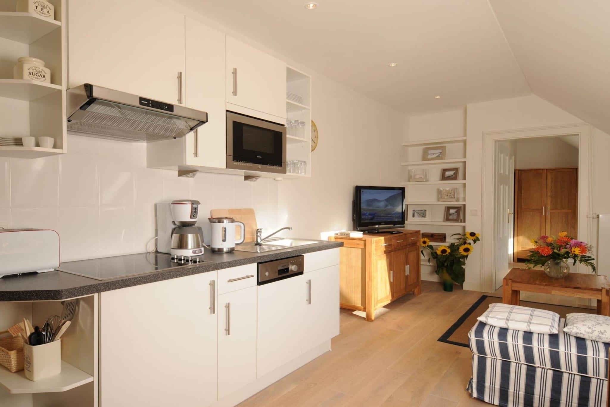 Luksuriøse 5-stjernede ferielejligheder i det renoverede Zicker-landsted på den idylliske Zudar-halvø i den sydlige del af Rügen. Du bor kun 600 m fra Østersøen, midt i fredelig, skovklædt natur. Herregården, bygget i anden halvdel af 1800-tallet, og godsets tidligere gård ligger lige ved siden af hinanden i godsets 16.000 kvadratmeter store park. Den relativt uberørte halvø Zudar er omgivet af flere vandområder: Rügischer Bodden, som er en del af Greifswalder Bodden, Schoritzer Wiek og Strelasund, en arm af Østersøen. Detaljer: Forbrugsbaserede energiomkostninger, sengelinned, håndklæder, slutrengøring Aktiviteter i nærheden: Sauna og fitness på landet. Du kan også låne en bog på ejendommens bibliotek og slappe af på solterrassen. Eller slentre og slentre gennem den smukke park, hvis træer giver vidunderlig skygge på varme, solrige dage. Den uspolerede strækning på Zudar-halvøen er særlig ideel til afslappende gåture, vandreture og cykelture. På kun 10 minutter er du ved vandet Ikke egnet til personer med nedsat mobilitet