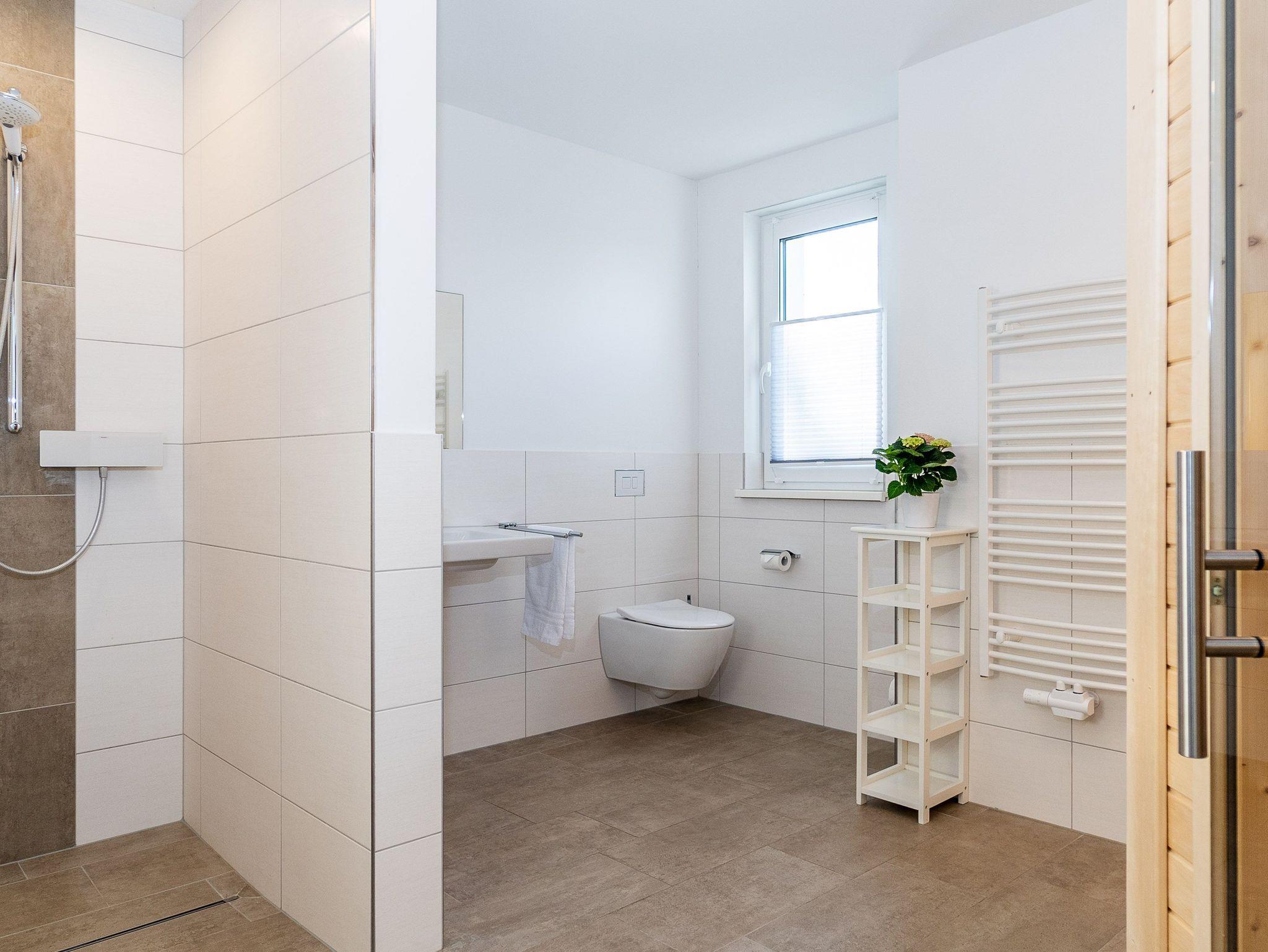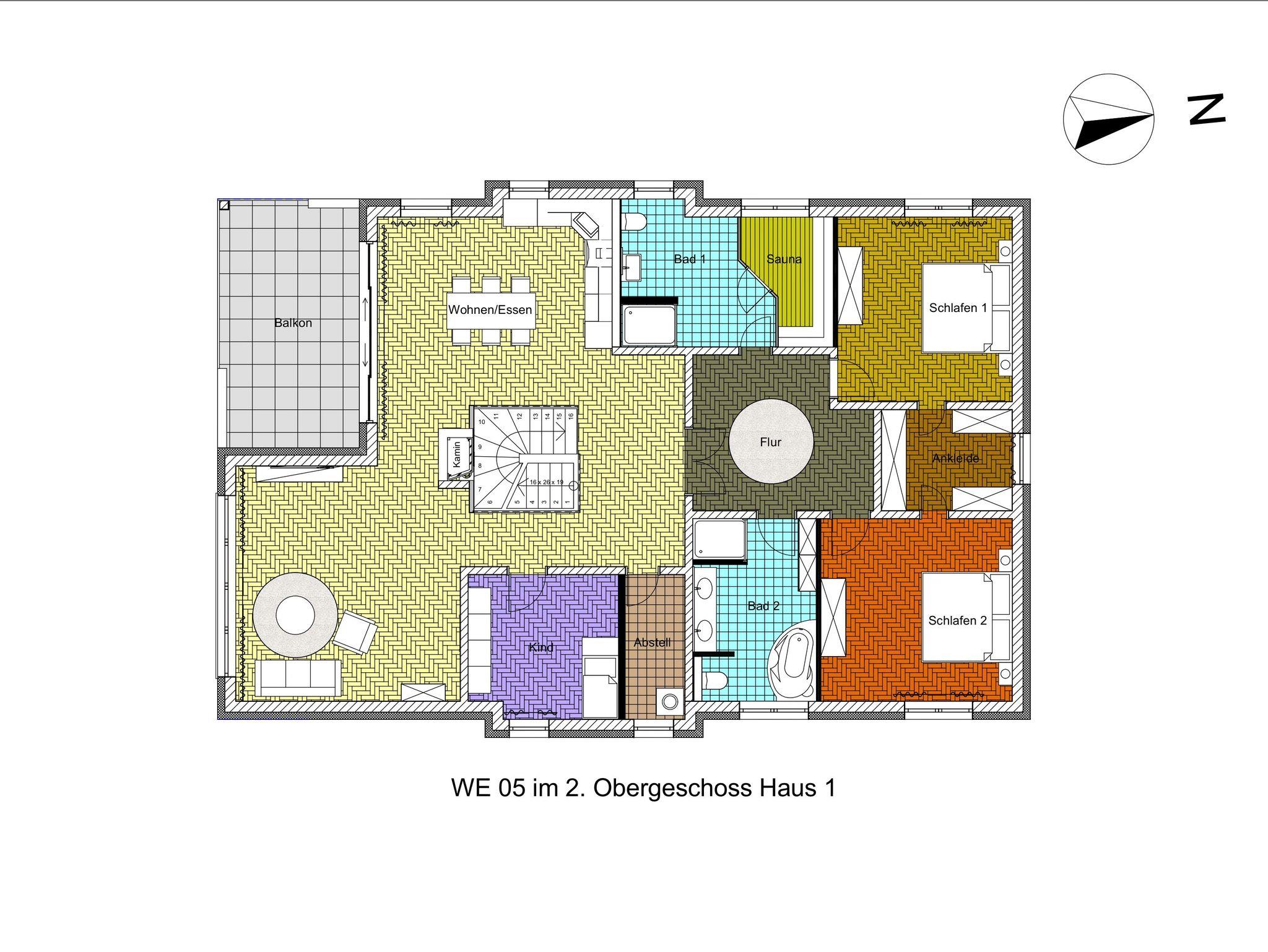 Unsere Ferienwohnung ist großzügig geschnitten und für bis zu 8 Personen geeignet, 2. OG, 160 qm, 3 Schlafzimmer zzgl. Schlafcoach im Wohnzimmer, 1 Balkon, 2 Bäder, Küche, eigene Sauna