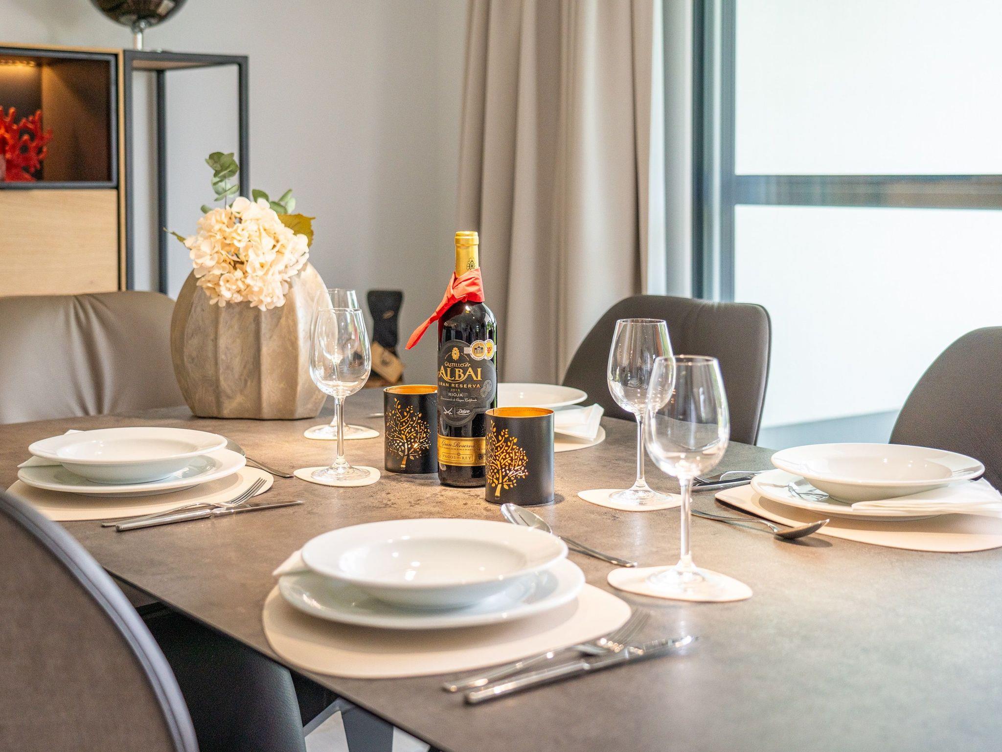Die modern eingerichtete Wohnung verfügt über drei Schlafzimmer, zwei Badezimmer, einen Wohn-Essbereich mit offener Küche, einen Abstellraum sowie eine möblierte Sonnenterrasse.