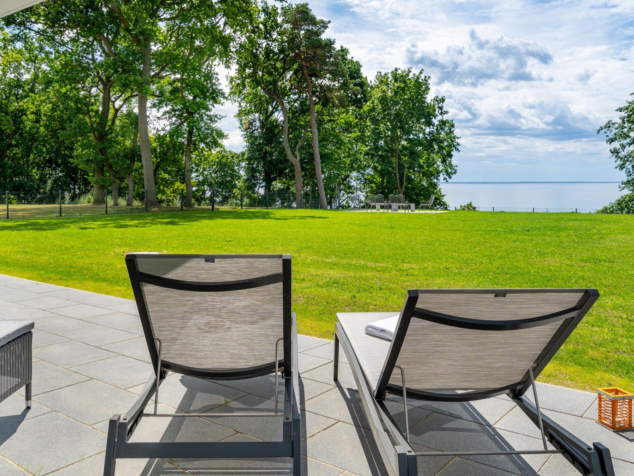 Der Gartenbereich zur Südseite wurde als Ruhezone mit Verweilmöglichkeiten auf der gemütlichen Terrasse gestaltet. Hier haben Sie einen fantastischen Blick auf das Haff und können entspannte Momente genießen.