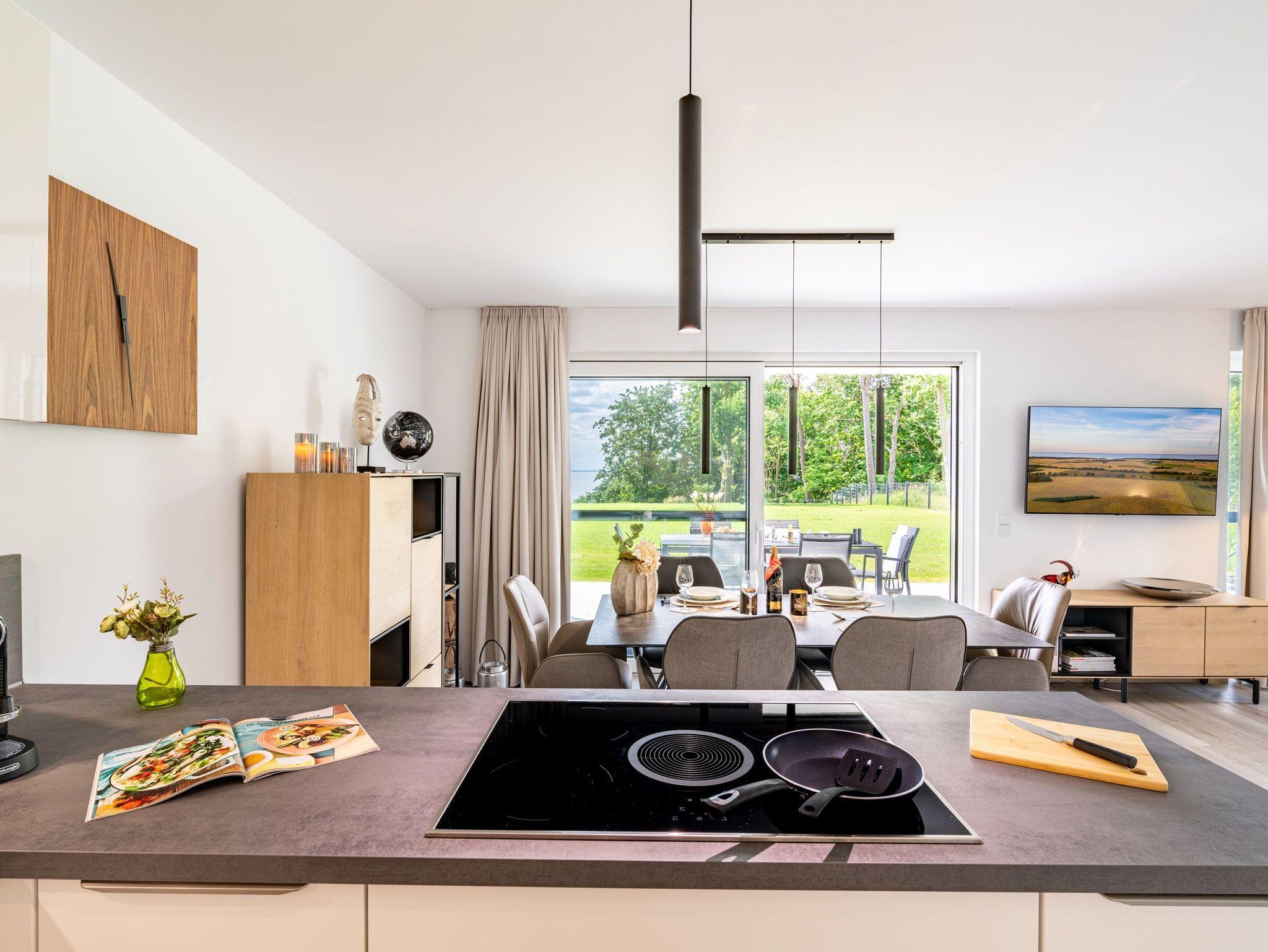 Das Induktionskochfeld mit Bora-Abzug ermöglicht Ihnen beim Kochen einen ungestörten Blick auf das Wasser ? einfach fantastisch!