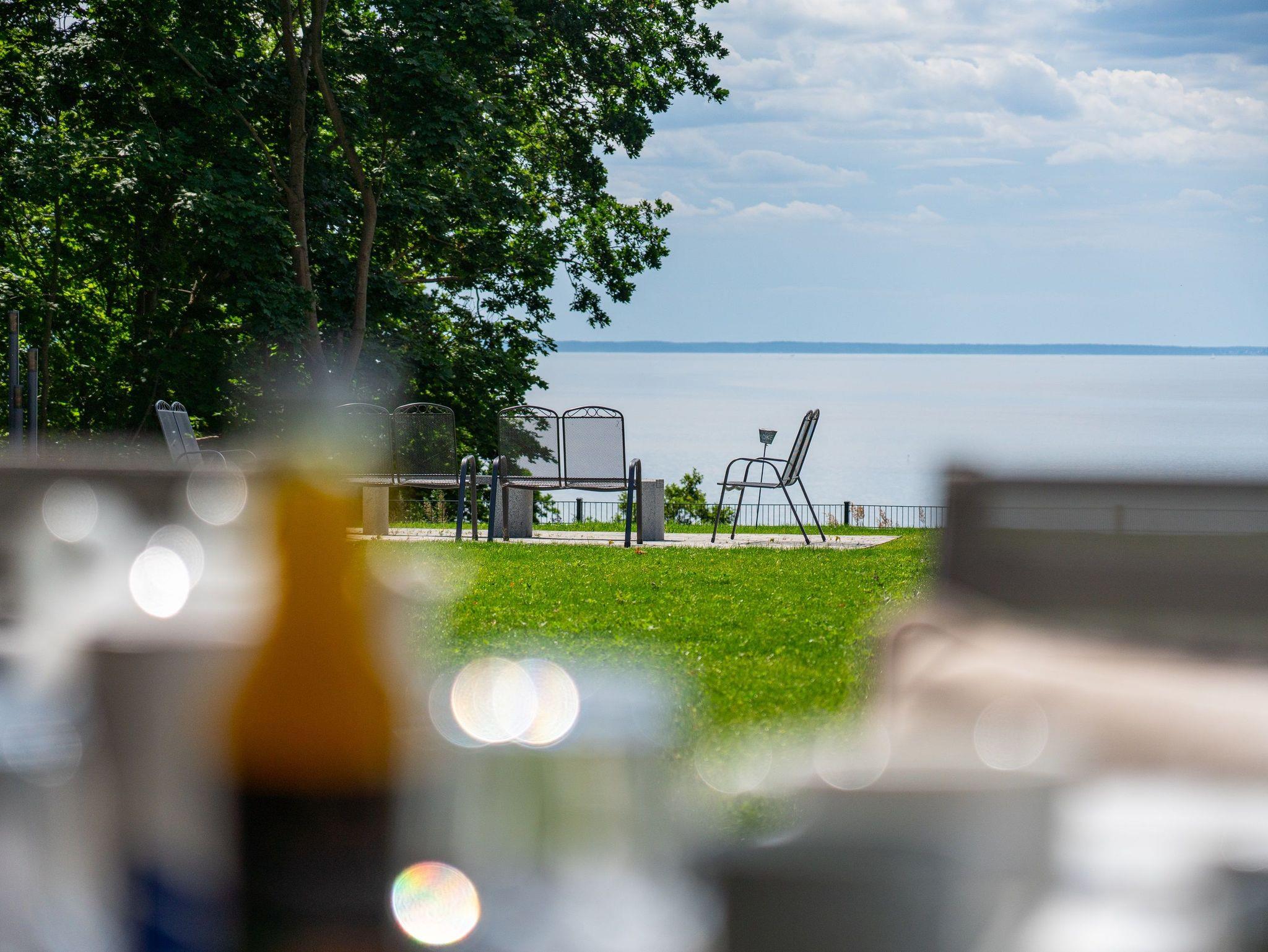 Freuen Sie sich auf den atemberaubenden Meerblick auf das Stettiner Haff von der 20 m² großen, überdachten Sonnenterrasse, die schnell Ihr Lieblingsplatz in diesem Ferienapartment wird.
