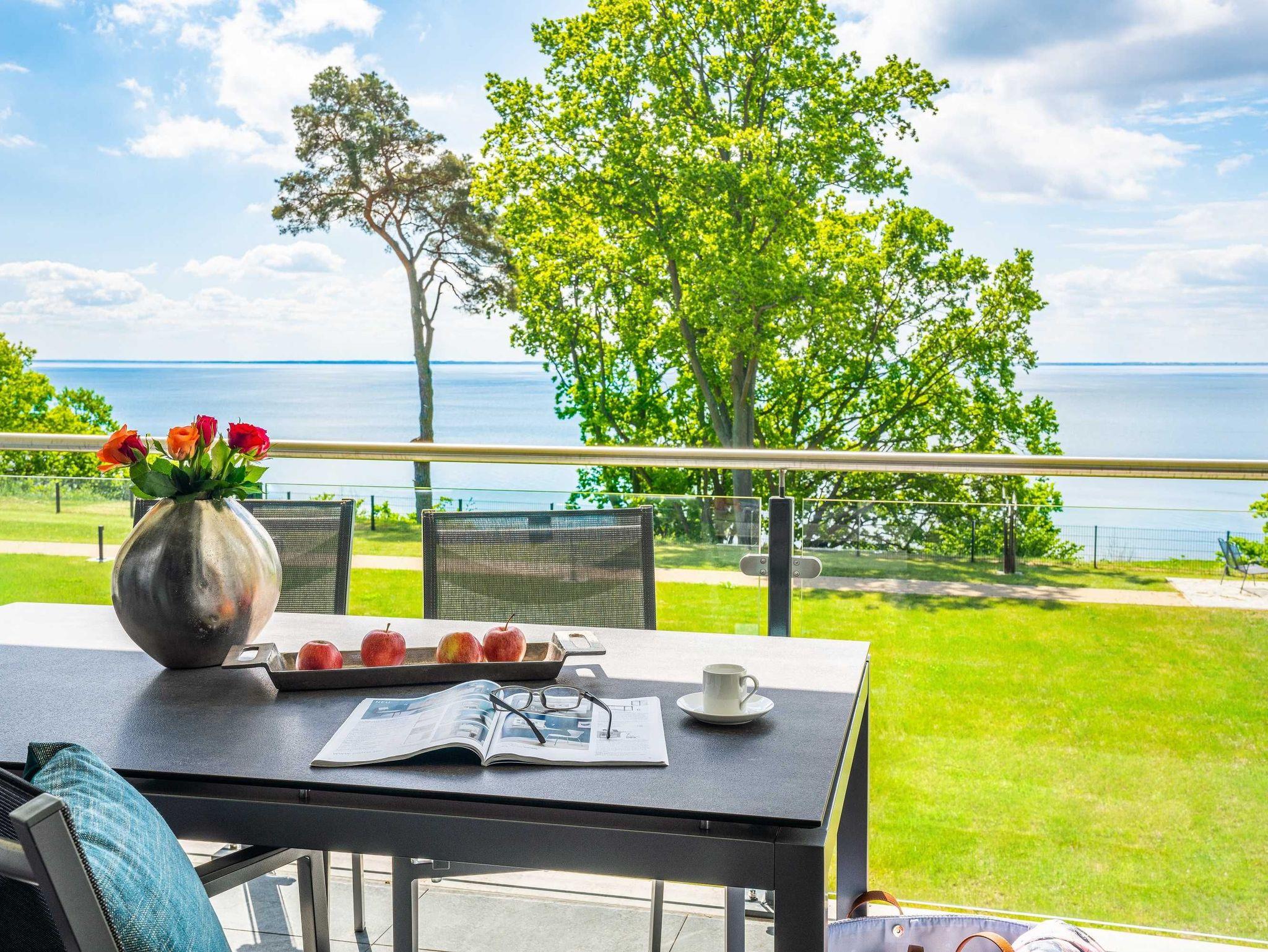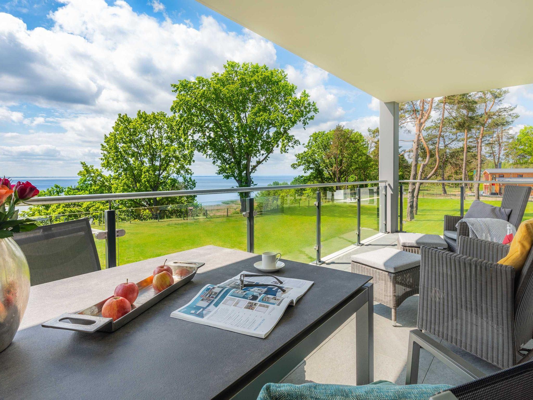 Unsere Luxus-Ferienwohnanlage bietet von großen Sonnenterrassen ein traumhaftes Panorama auf das direkt vor uns gelegene Stettiner Haff, das in seiner Weite größer als der Bodensee ist. Der fantastische Blick auf das funkelnde Meer wird Sie verzaubern.