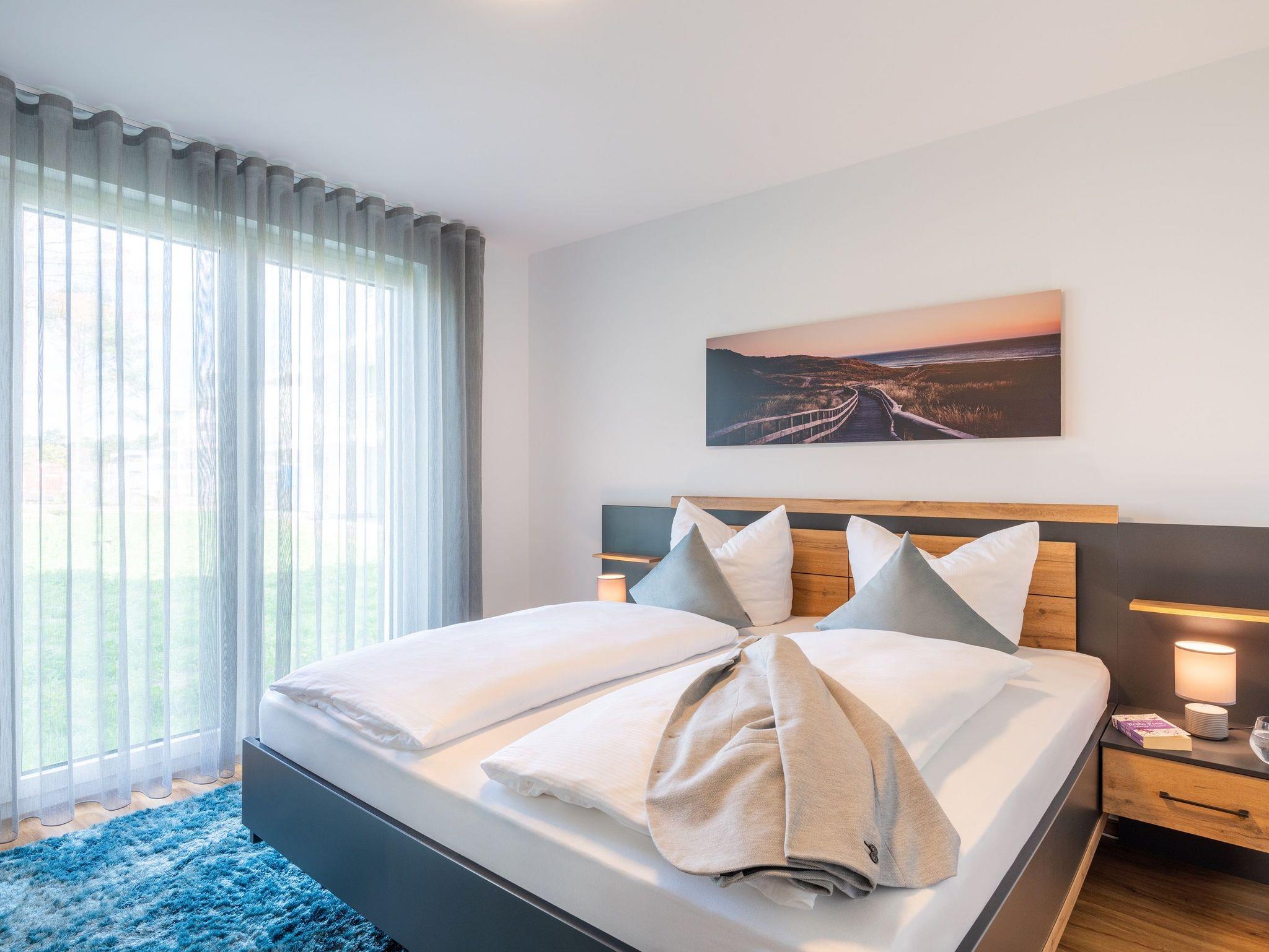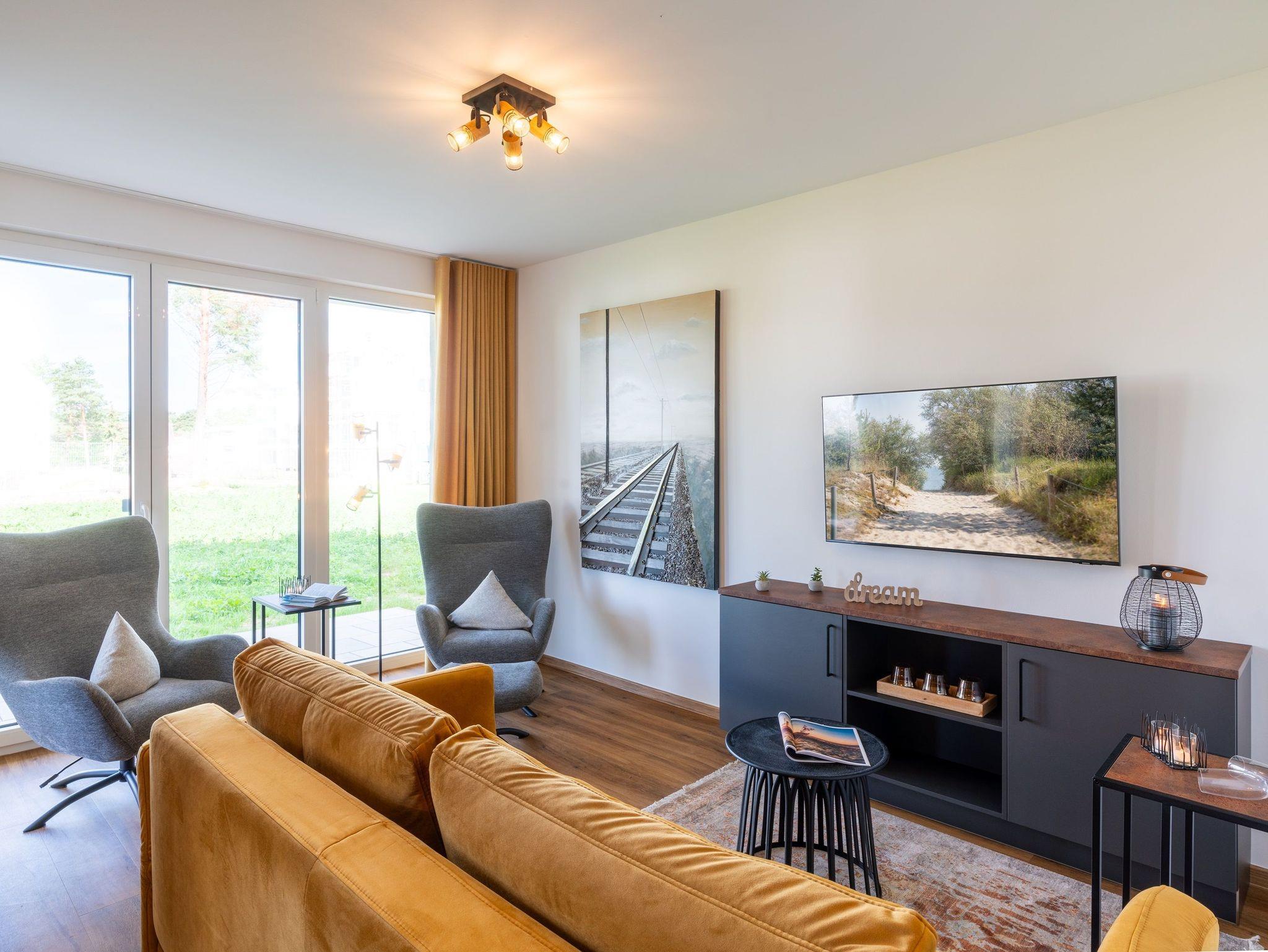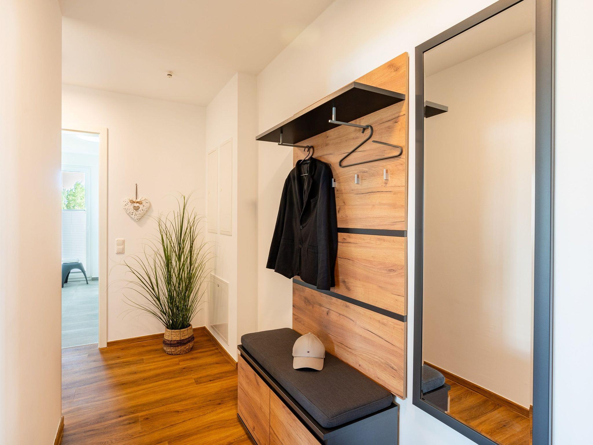 Auf einer Wohnfläche von 70 m² finden drei Erwachsene und ein Kleinkind bis zwei Jahre (im Babybett) in dieser modern eingerichteten Ferienwohnung ausreichend Platz für einen entspannten Urlaub am Stettiner Haff auf Usedom.