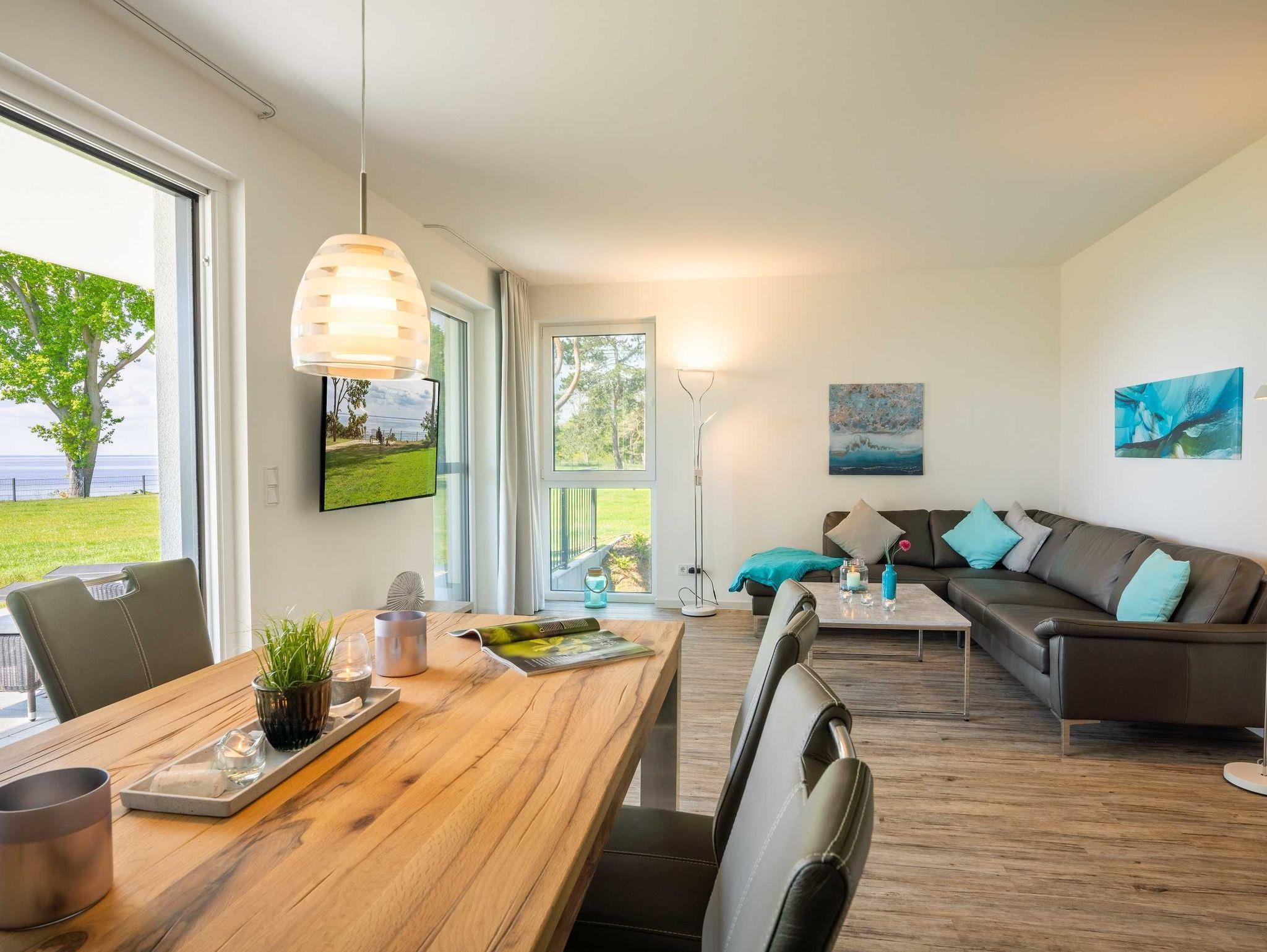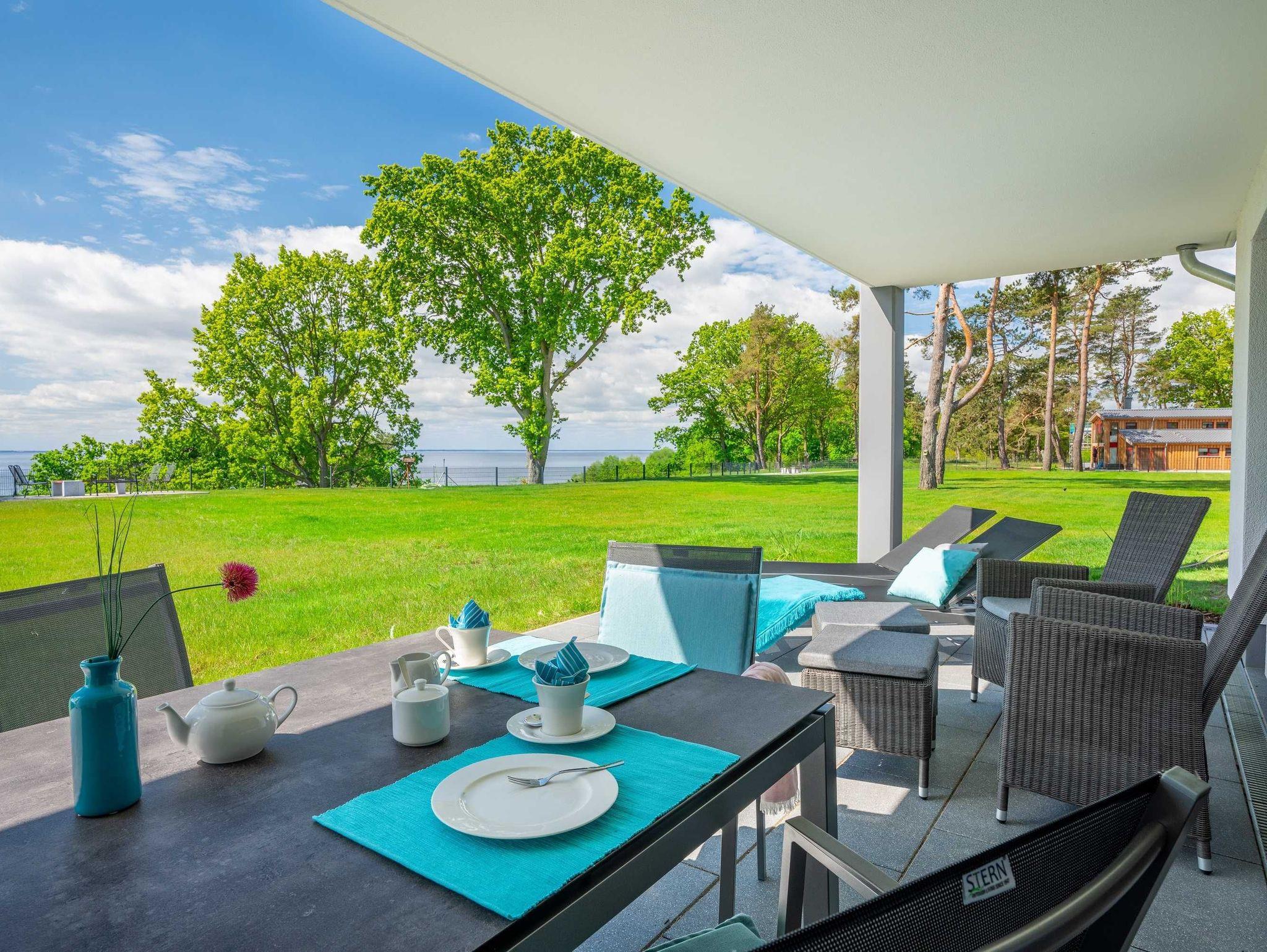 Alle Terrassenwohnungen und Appartements sind mit viel Liebe zum Detail in hochwertiger Luxus-Ausstattung eingerichtet. Von großen Rasenflächen und ebenen Gehwegen umgeben, stehen unsere Ferienhäuser auf die Haffküste ausgerichtet und auf einer weitflächigen Außenanlage zueinander. Unsere Haffterrassen laden mit Sitzgelegenheiten an der Steilküste zum Entspannen bei einem Glas Wein ein.