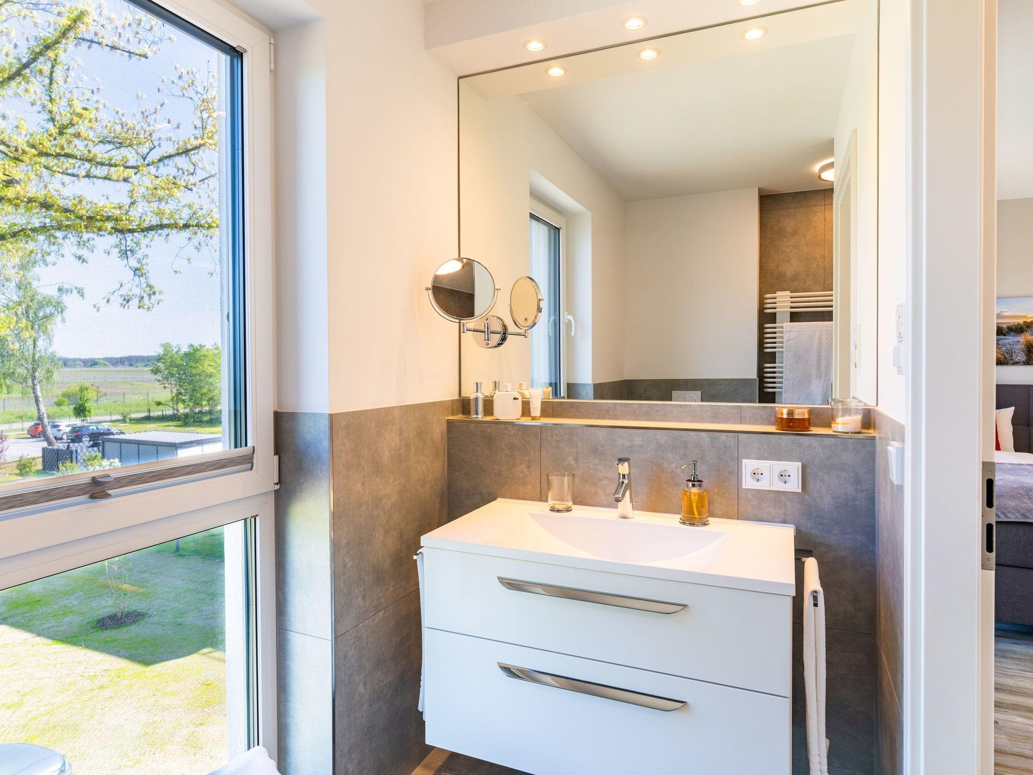 Diese im Jahr 2024 fertiggestellte Ferienwohnung verfügt über eine Wohnfläche von 115 m² und befindet sich im Haus 8, das etwa 400 Meter von den anderen „Oase am Haff“-Häusern entfernt auf einem separaten Grundstück in gleicher Südlage liegt.