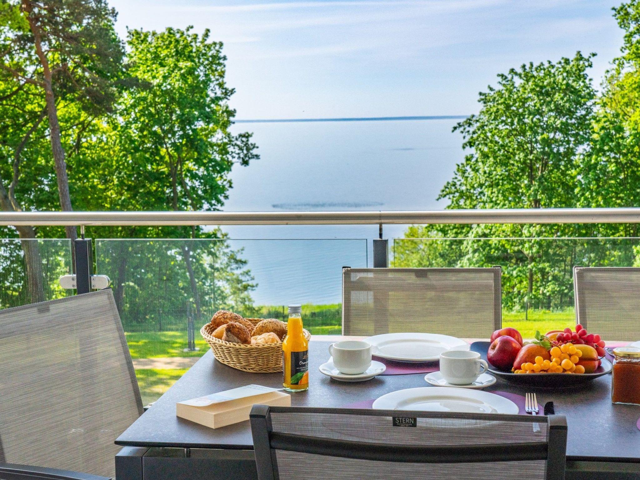 Freuen Sie sich auf den atemberaubenden Meerblick auf das Stettiner Haff vom 18 m² großen, überdachten Sonnenbalkon, der schnell Ihr Lieblingsplatz in diesem Ferienapartment wird.