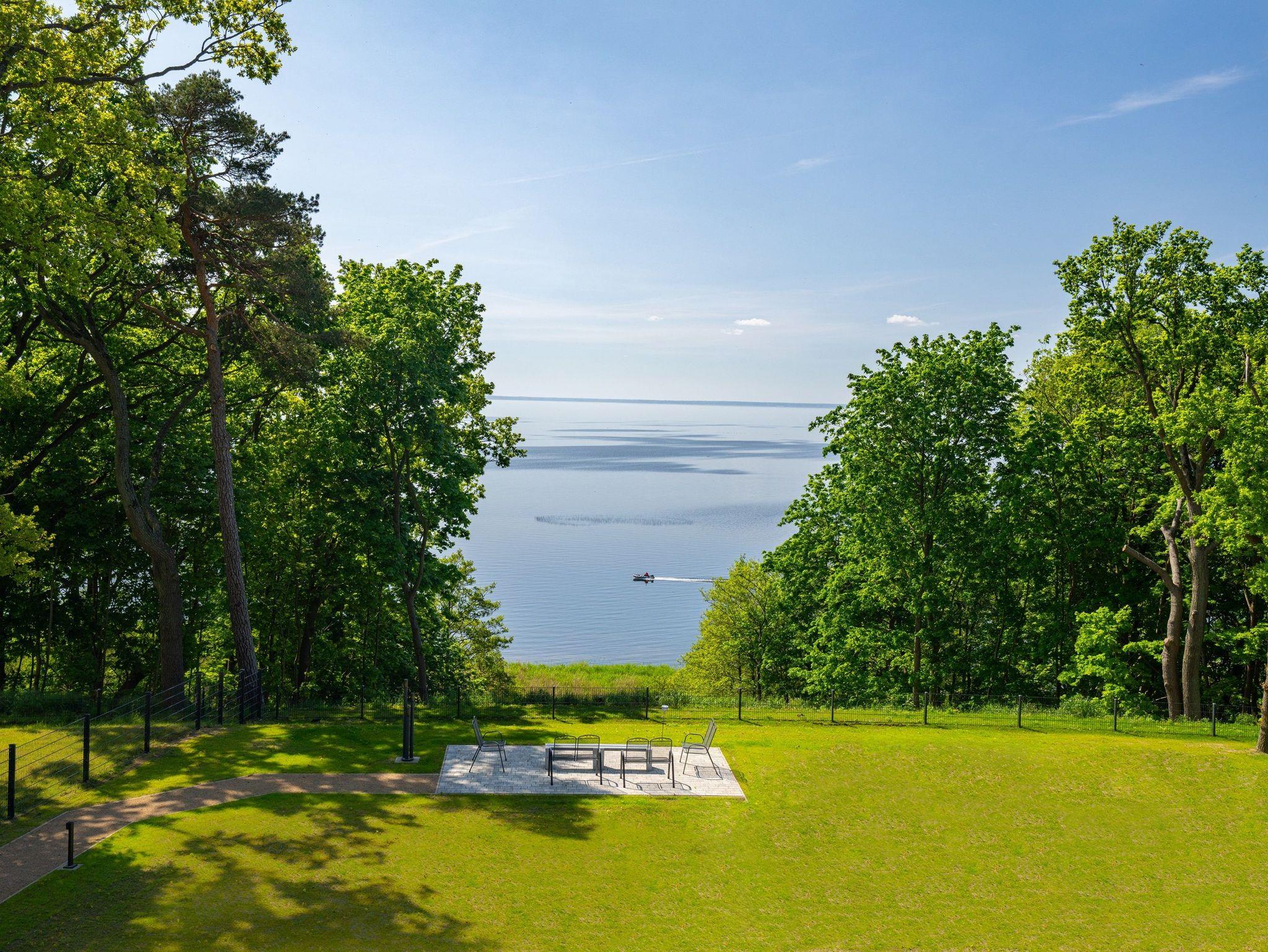 Der Gartenbereich zur Südseite wurde als Ruhezone mit Verweilmöglichkeiten auf der gemütlichen Terrasse gestaltet. Hier haben Sie einen fantastischen Blick auf das Haff und können entspannte Momente genießen.
