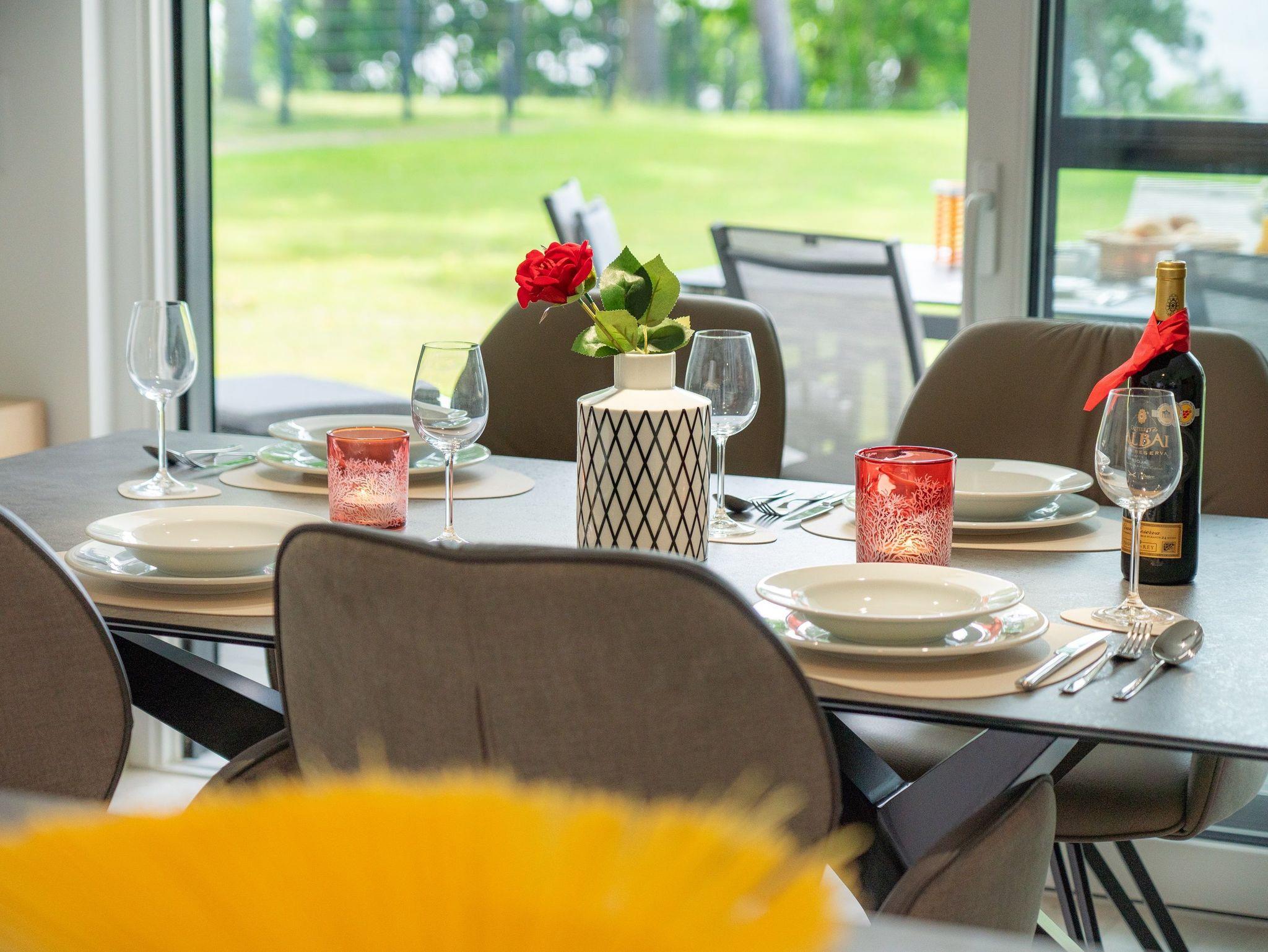 Freuen Sie sich auf den atemberaubenden Meerblick auf das Stettiner Haff von der 20 m² großen, überdachten Sonnenterrasse, die schnell Ihr Lieblingsplatz in diesem Ferienapartment wird.