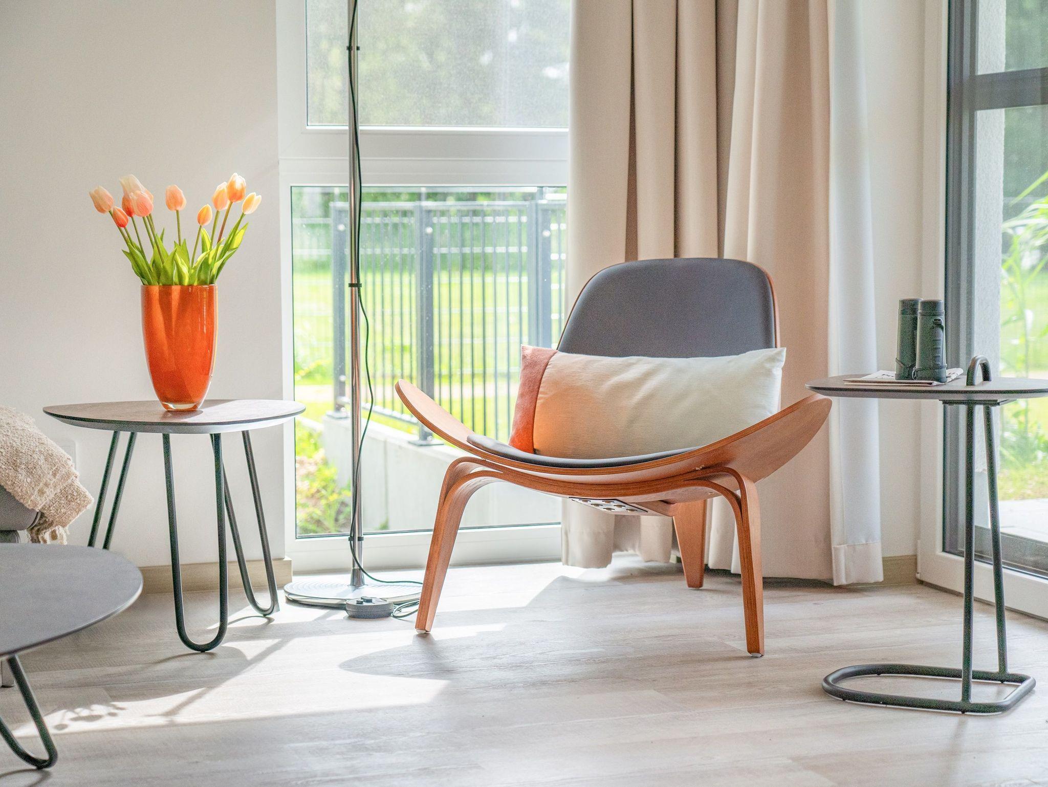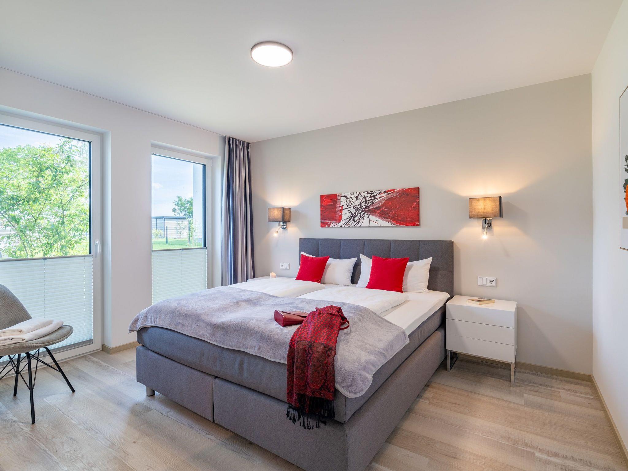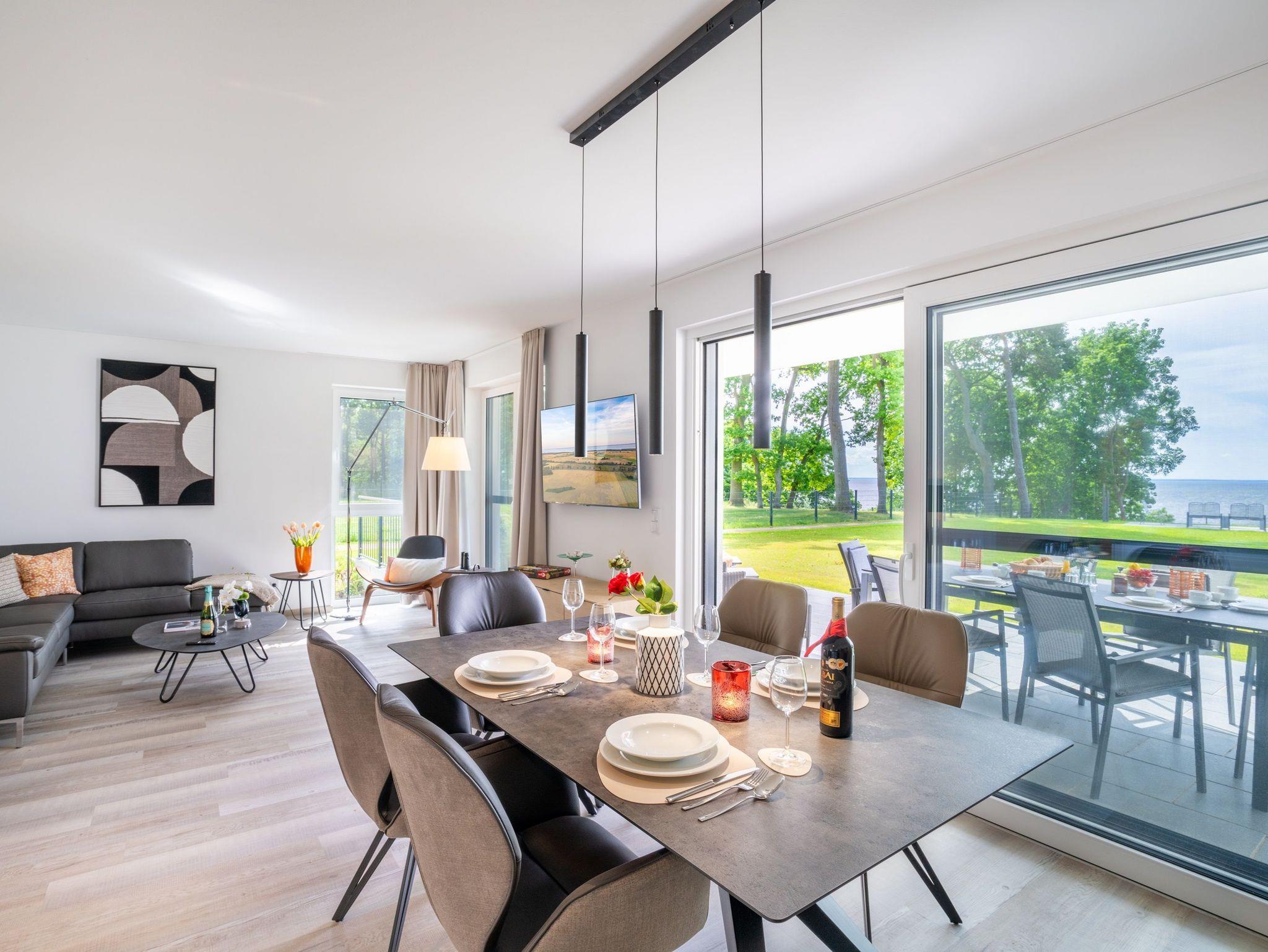 Diese im Jahr 2024 fertiggestellte Ferienwohnung verfügt über eine Wohnfläche von 112 m² und befindet sich im Haus 8, das etwa 400 Meter von den anderen „Oase am Haff“-Häusern entfernt auf einem separaten Grundstück in gleicher Südlage liegt.