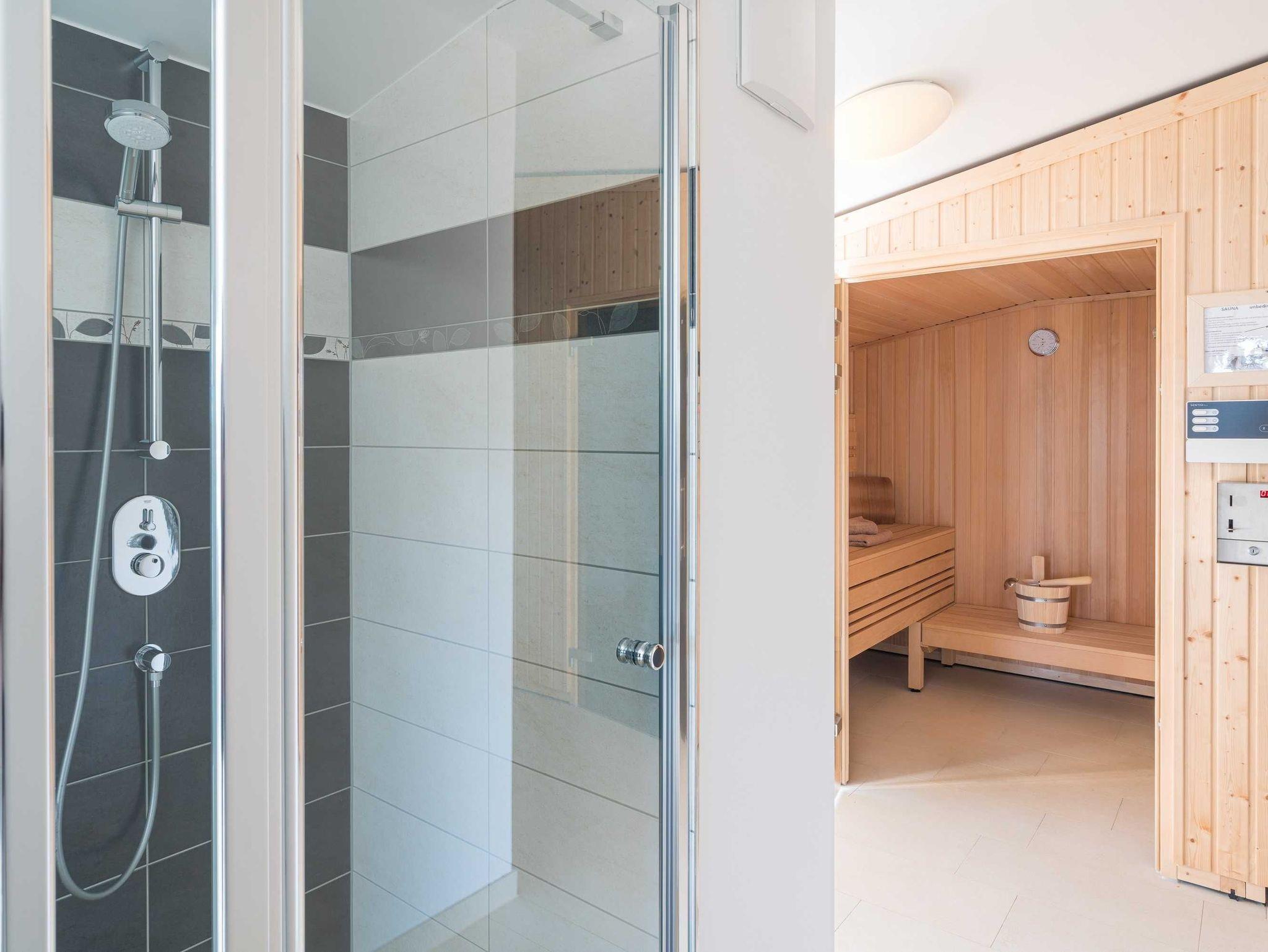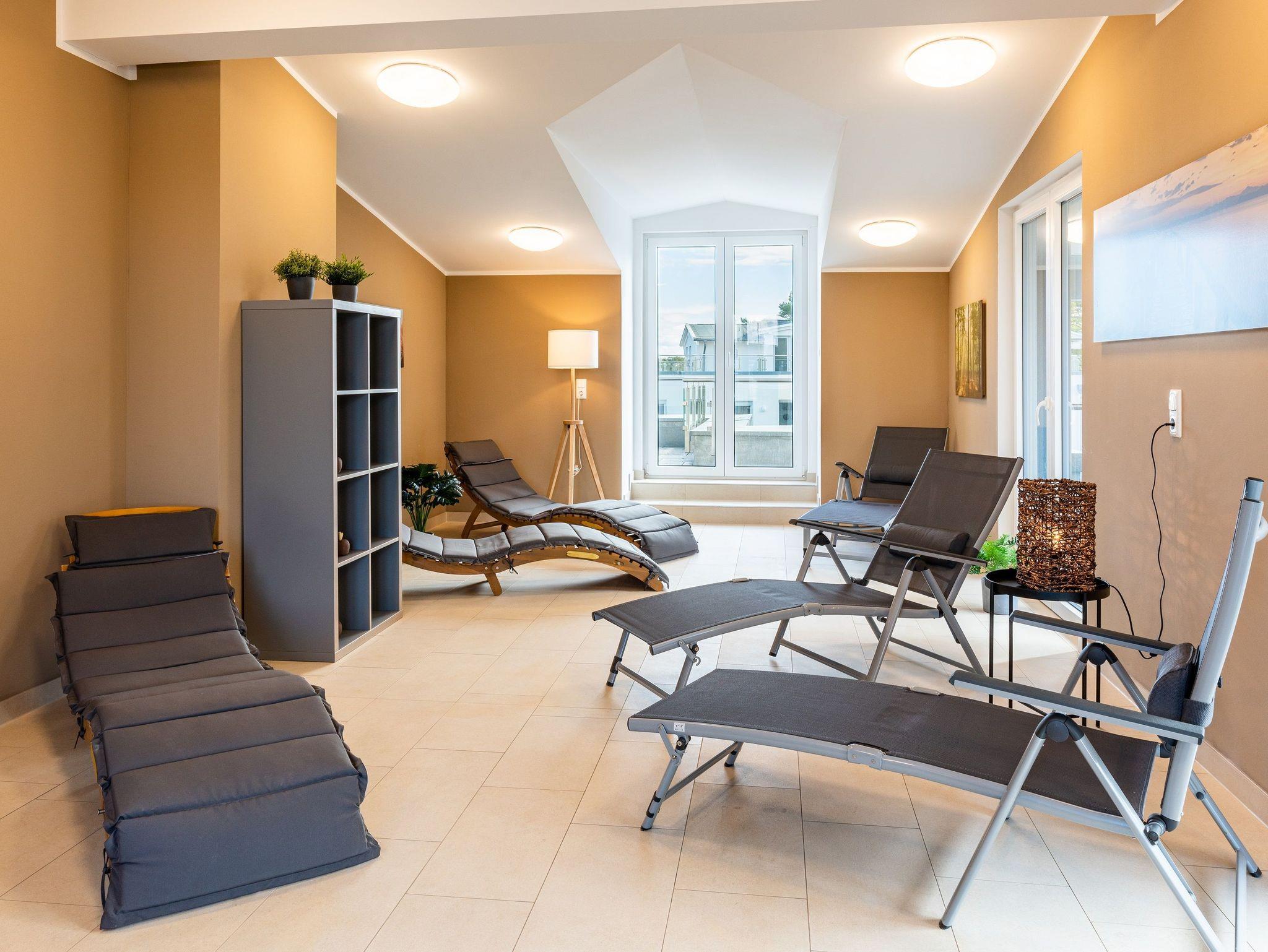 Weit ab von der Hektik und den Besuchermassen öffentlicher Wellnessangebote, finden Sie im Dachgeschoss des Hauses auf 190 m² die Ruhe, die Sie sich verdient haben. Entspannen Sie im hauseigenen, kostenfreien Wellnessbereich mit drei Saunen. Genießen Sie die klare Ostseeluft auf der großen angrenzenden Dachterrasse.