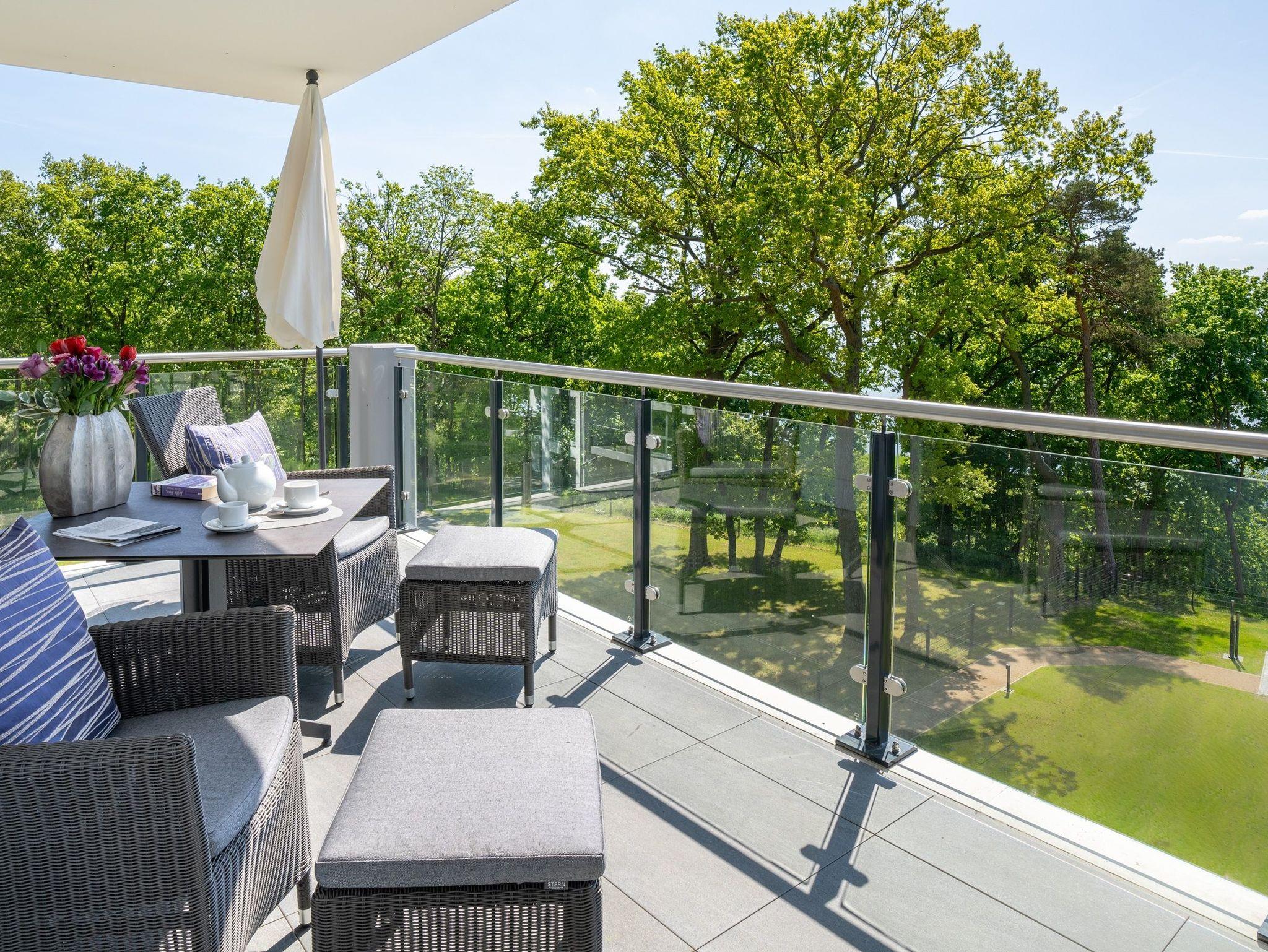 Freuen Sie sich auf den atemberaubenden Meerblick auf das Stettiner Haff vom 18 m² großen, überdachten Sonnenbalkon, der schnell Ihr Lieblingsplatz in diesem Ferienapartment wird.
