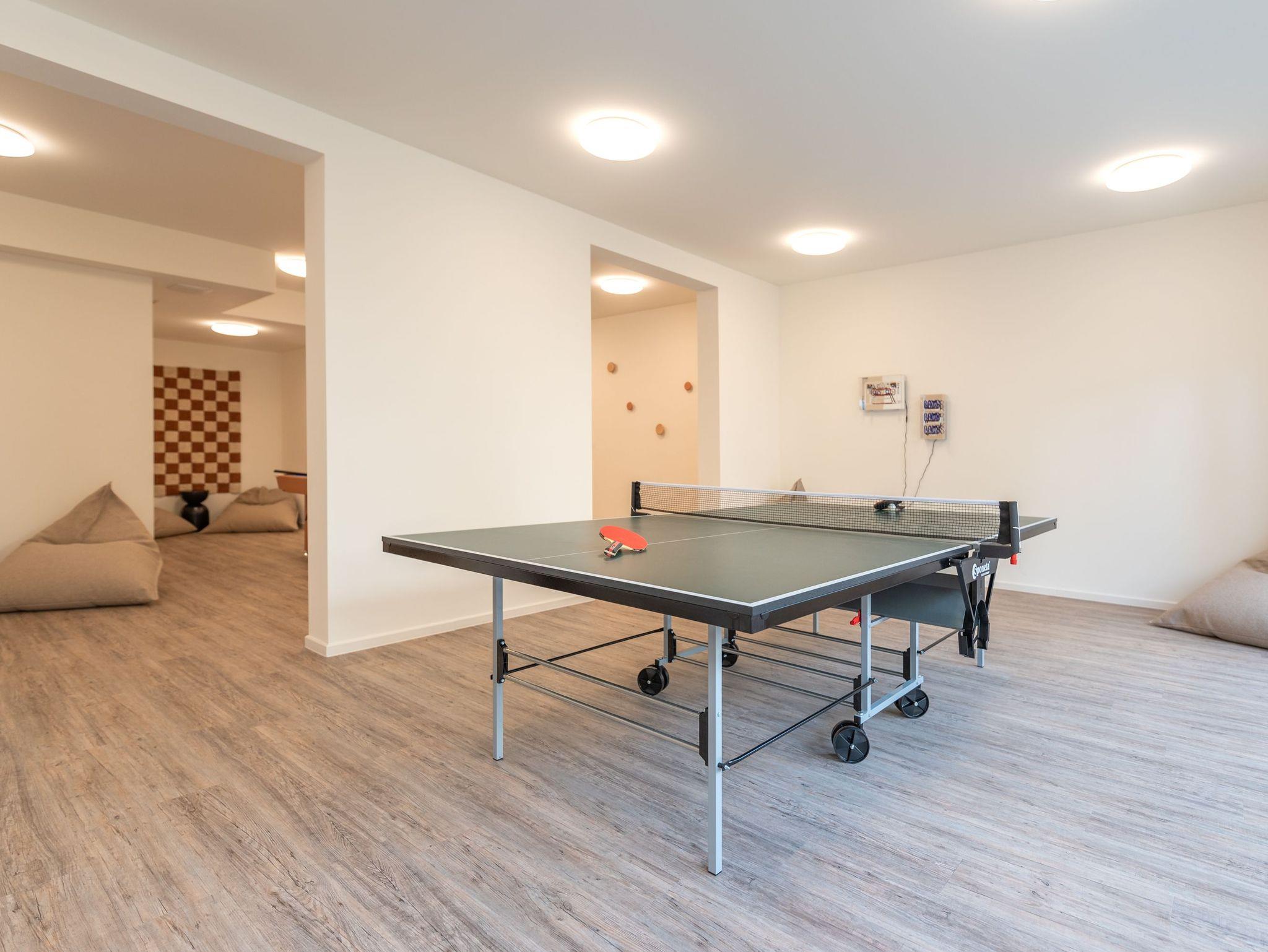 Im Untergeschoss erwartet Sie ein Gemeinschaftsbereich mit Tischtennis, Kicker, Billard sowie einer Spielecke für Kinder all das kostenfrei nutzbar.