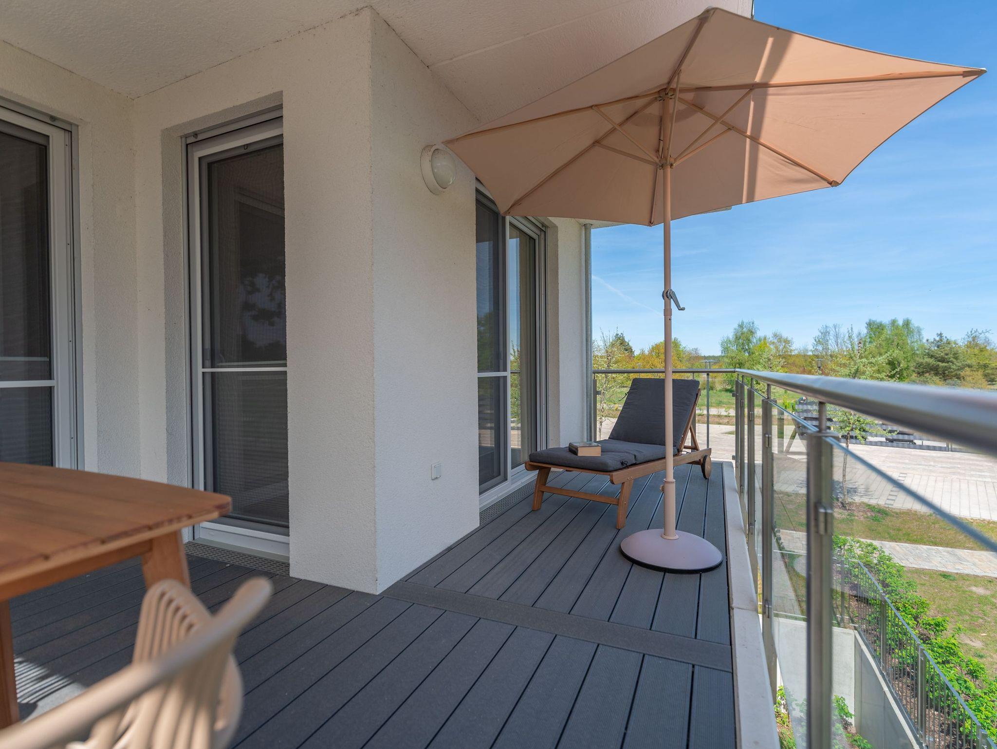 Der überdachte Balkon bietet den idealen Ort für gemütliche Stunden im Freien ob zum Frühstück mit Blick in die grüne Umgebung oder zum entspannten Tagesausklang. WLAN sowie ein eigener Parkplatz direkt am Haus stehen Ihnen selbstverständlich kostenfrei zur Verfügung. Eine Fahrradabstellmöglichkeit befindet sich in einem Abstellraum im Erdgeschoss des Hauses (ebenerdiger Ausgang).