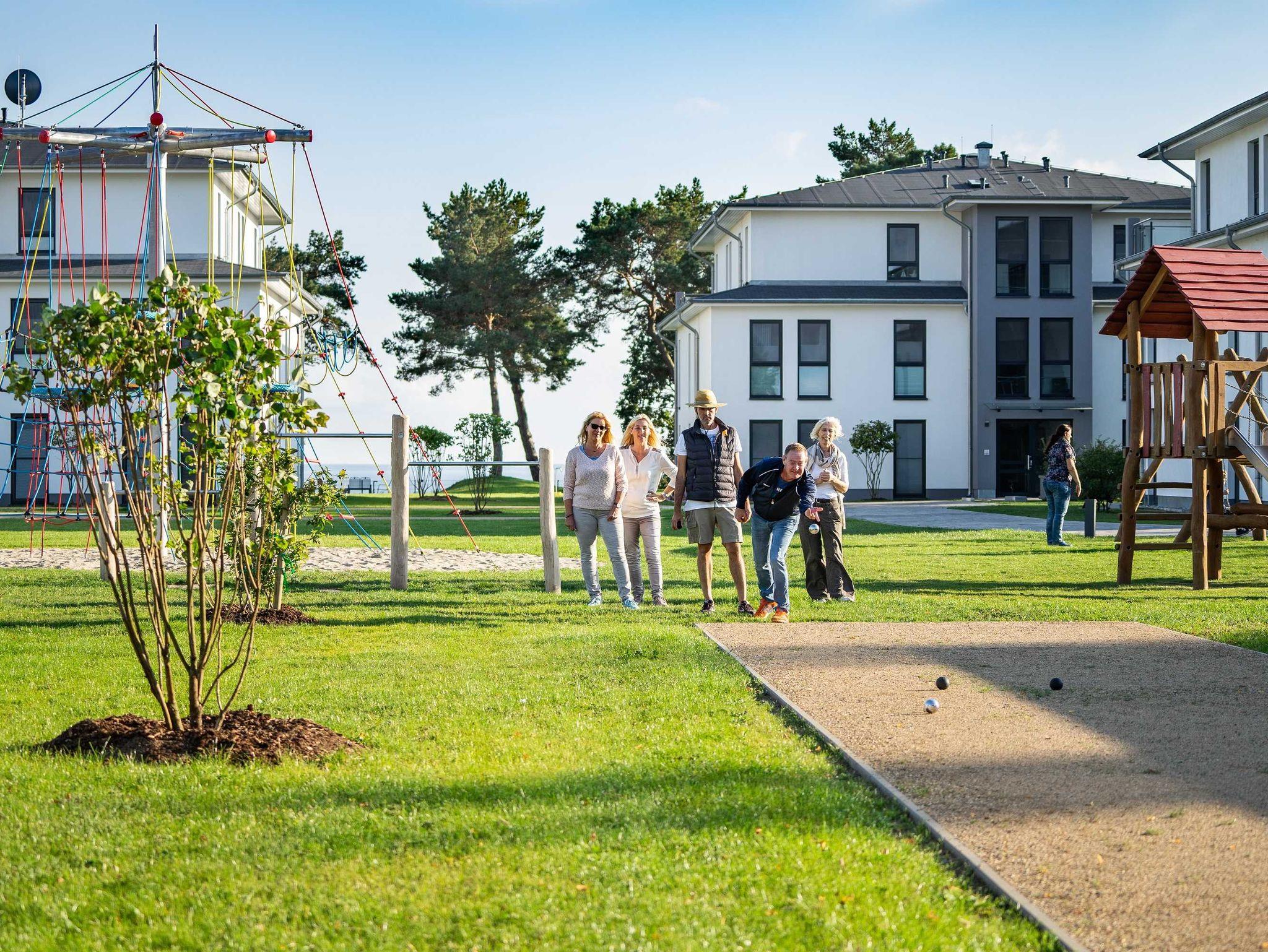Ihre Kinder können sich auf unseren Außenspielplätzen mit Kletterturm, Seilbahn und Spielgeräten austoben. Außerhalb der Ferienanlage gibt es einen Bolzplatz und in den Souterrainbereichen unserer Häuser einen Innenspielraum.