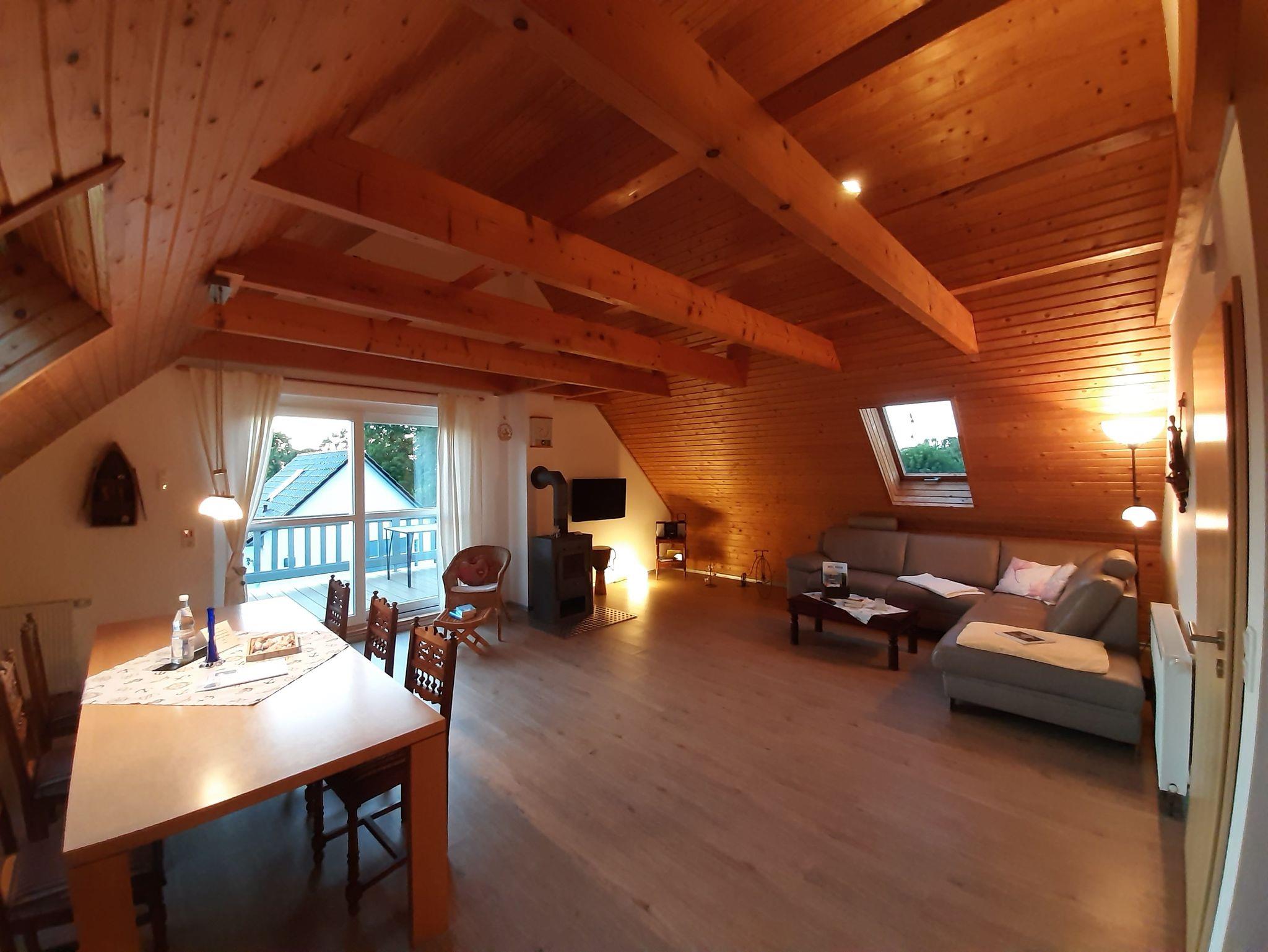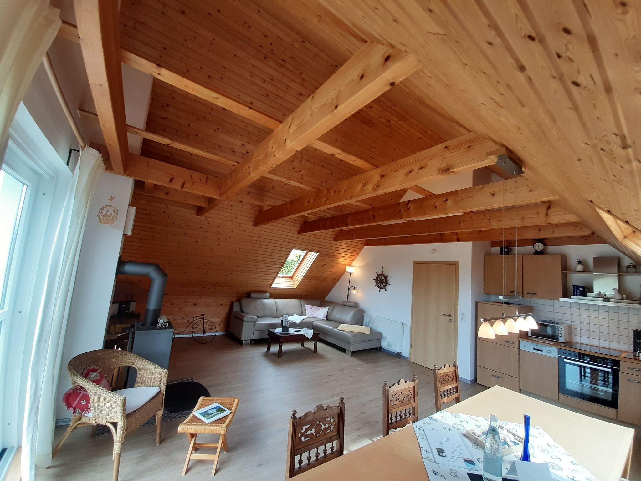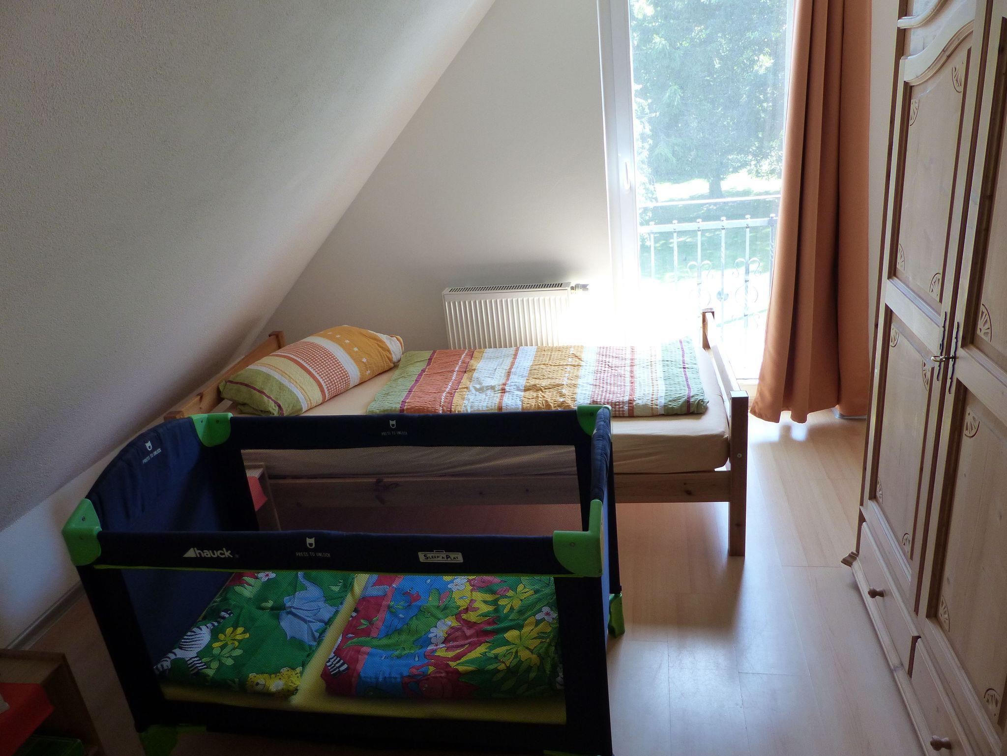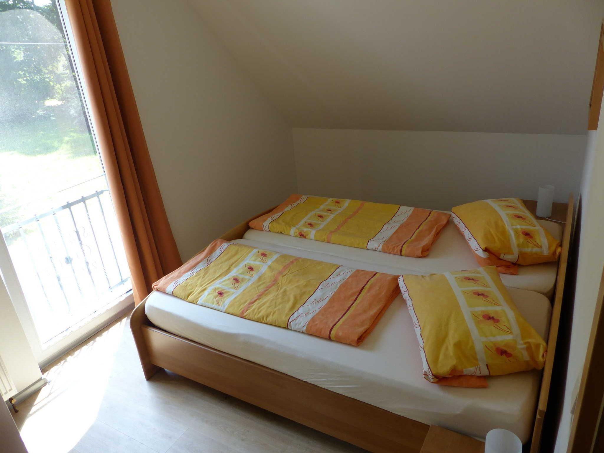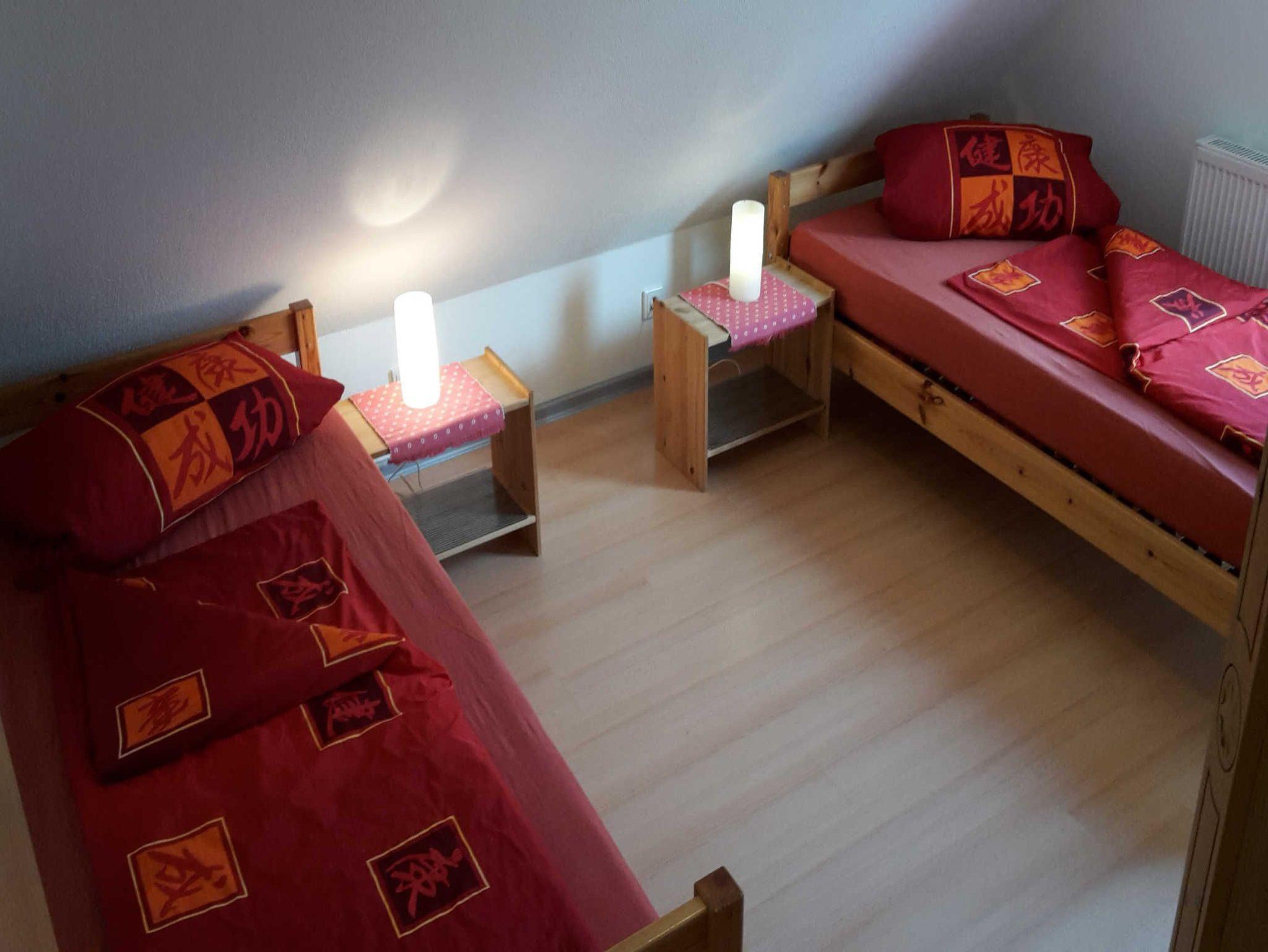 Gemütliche Wohnung im Obergeschoss mit 2 Schlafräumen (eines mit Doppelbett und eines mit zwei Einzelbetten), Bad und Wohnküche sowie Balkon und Garten zur Belegung bis 4 Personen.