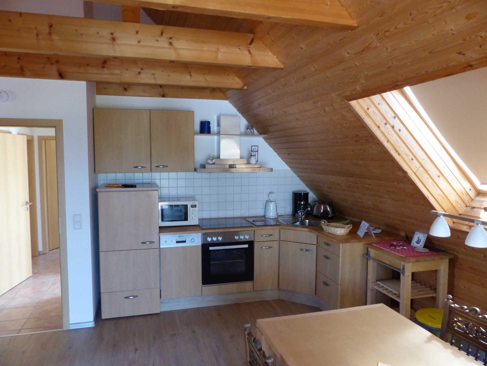 Für Ihren angenehmen Aufenthalt in unserem Haus bieten wir Ihnen ein umfangreiches Sortiment an Zubehör und Ausstattung. Die Küche ist mit Geschirrspüler, Kühl-Gefrier-Kombination, 4-fach Cerankochfeld, Backofen, Mikrowelle, Kaffeemaschine, Toaster, Wasserkocher, Geschirr/Besteck/Kochutensilien ausgestattet. Ein großer Esstisch rundet das Angebot ab. Bei Bedarf können Kinderstühlchen für die Kleinen bis 3 Jahre zur Verfügung gestellt werden.