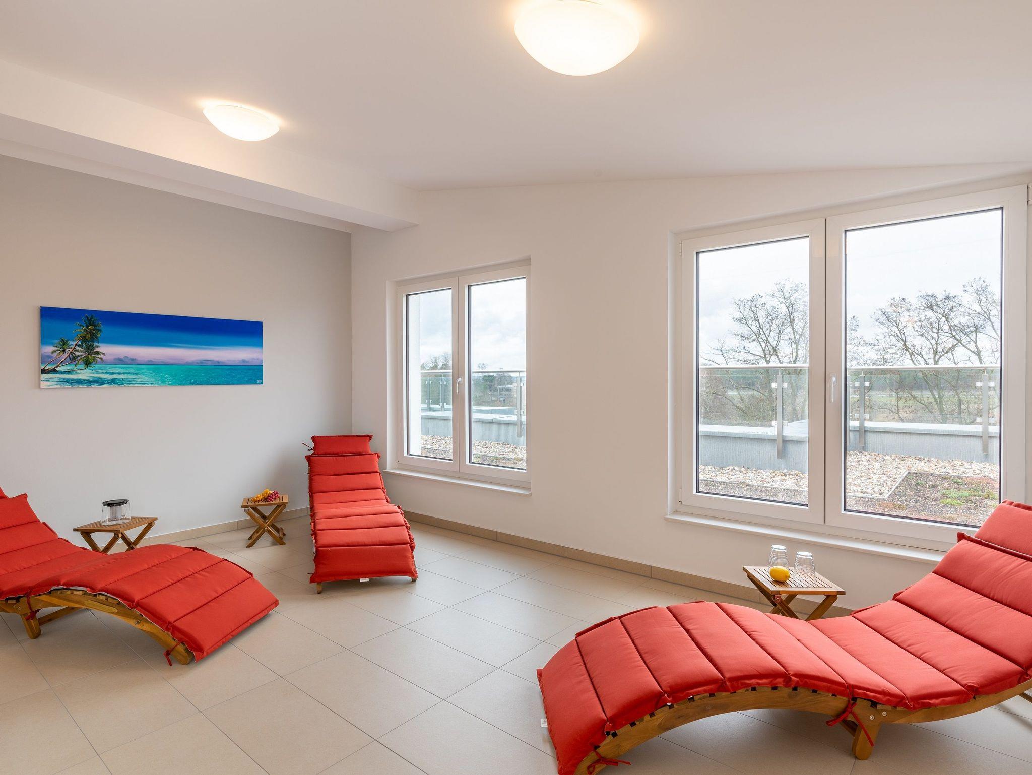 Weit ab von der Hektik und den Besuchermassen öffentlicher Wellnessangebote, finden Sie im Dachgeschoss des Hauses auf 190 m² die Ruhe, die Sie sich verdient haben. Entspannen Sie im hauseigenen, kostenfreien Wellnessbereich mit zwei Saunen und gemütlichem Ruheraum. Genießen Sie die klare Ostseeluft auf der großen angrenzenden Dachterrasse.