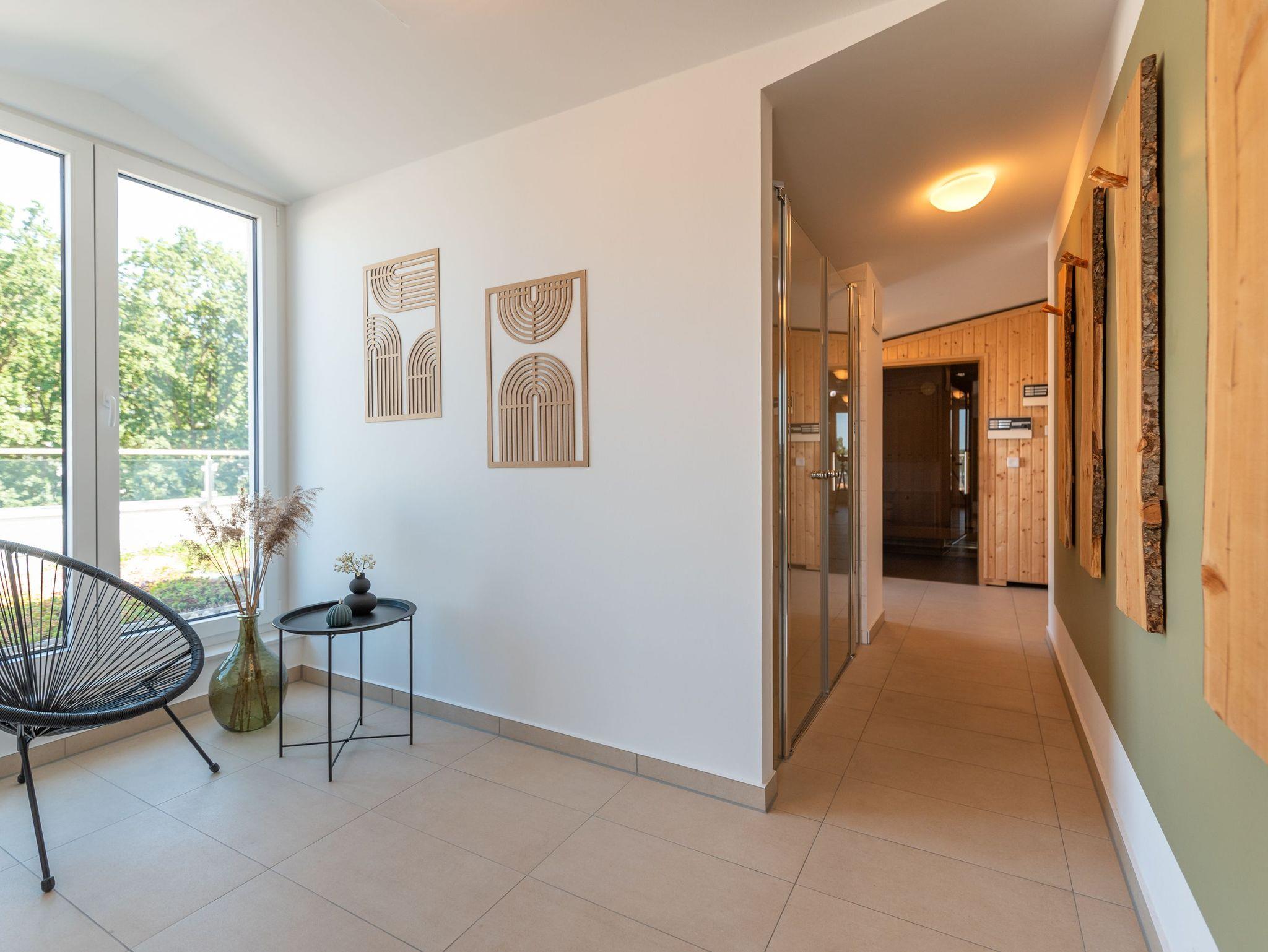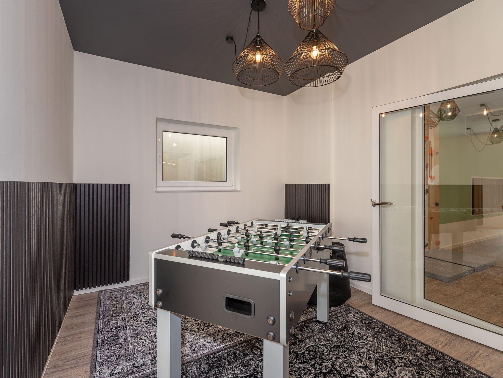 Der hauseigene Wellnessbereich im Dachgeschoss umfasst drei Saunen, einen gemütlichen Ruheraum und eine Dachterrasse mit beeindruckendem Ausblick. Ein Gemeinschaftsbereich im Nebengebäude bietet Freizeitmöglichkeiten wie Billard, Tischkicker, Airhockey und Tischtennis, eine Spielecke für Kinder und einen Fitnessraum. Beides kann kostenfrei genutzt werden.