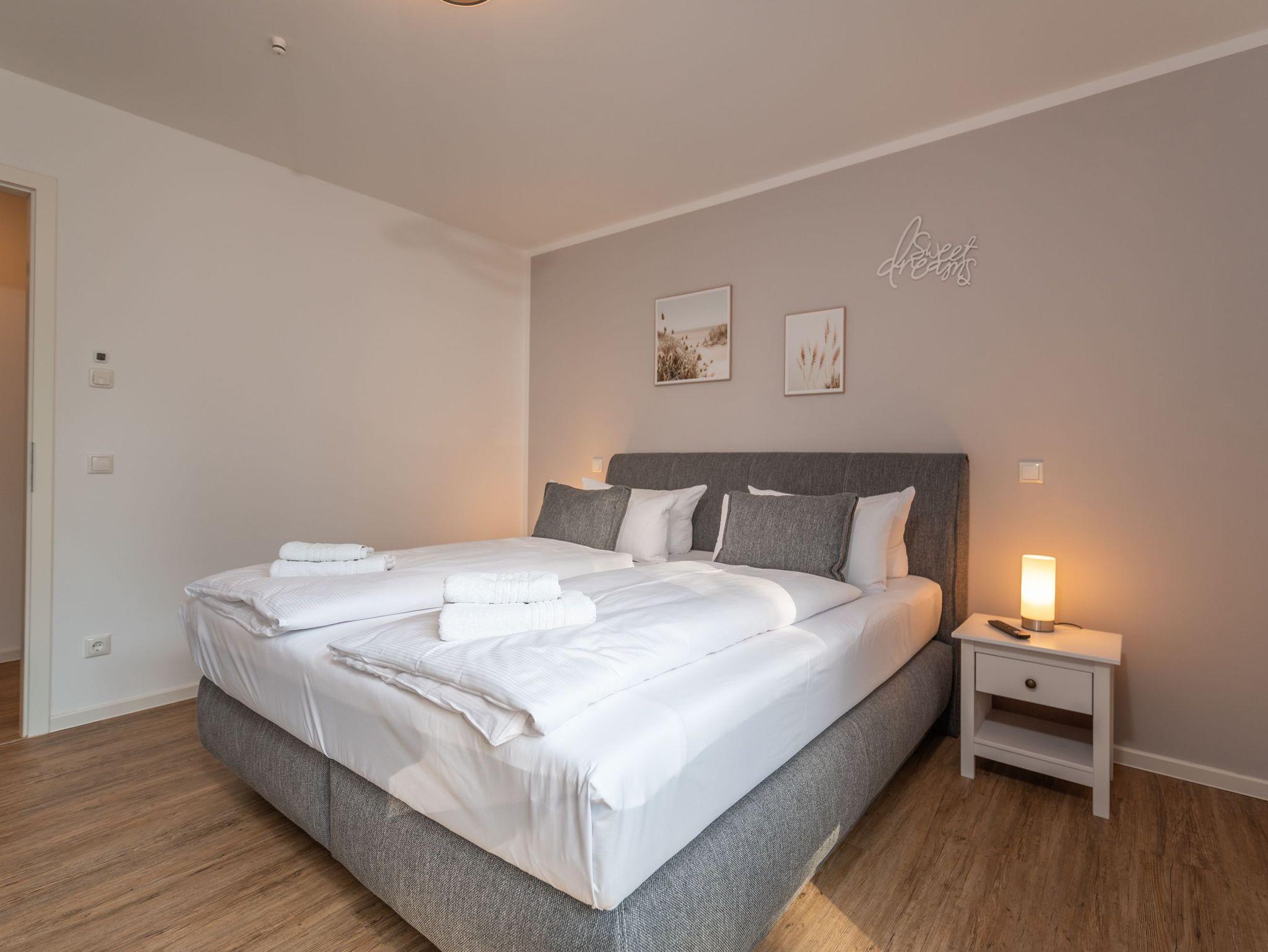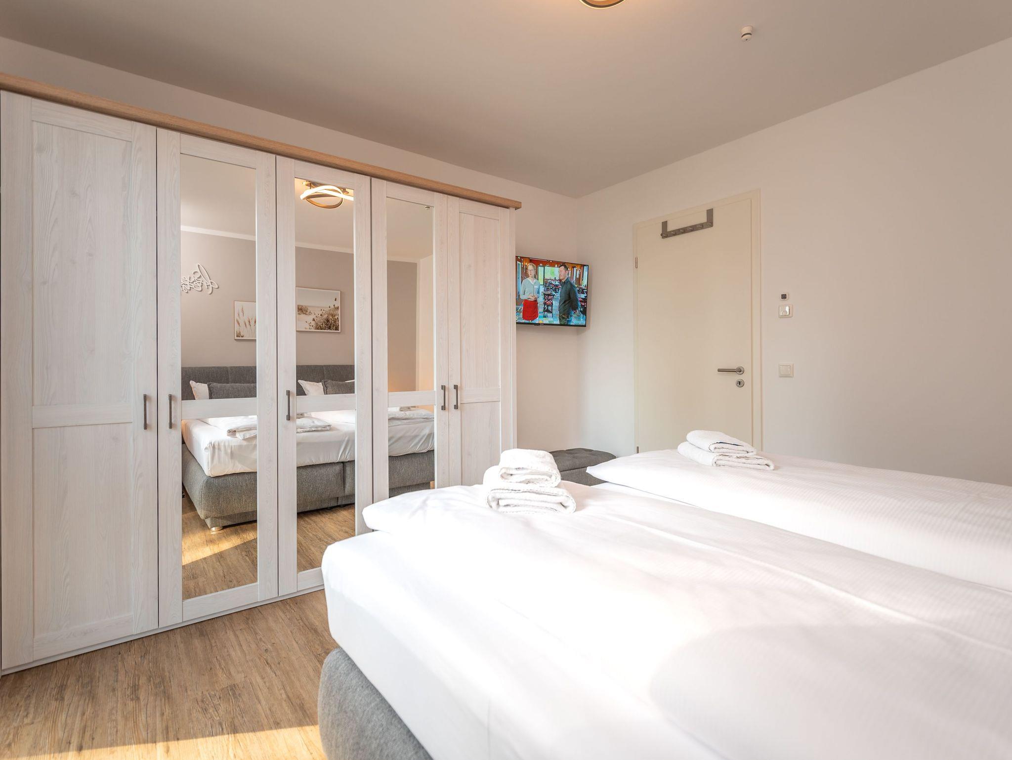 • Schlafzimmer mit Doppelbett und großem Kleiderschrank
